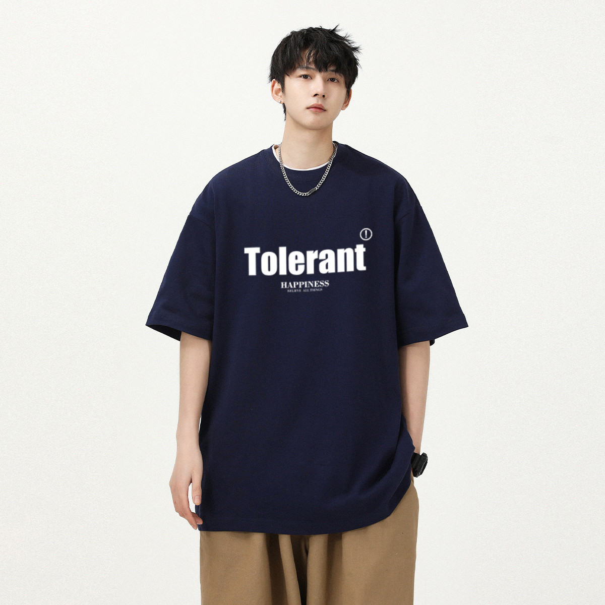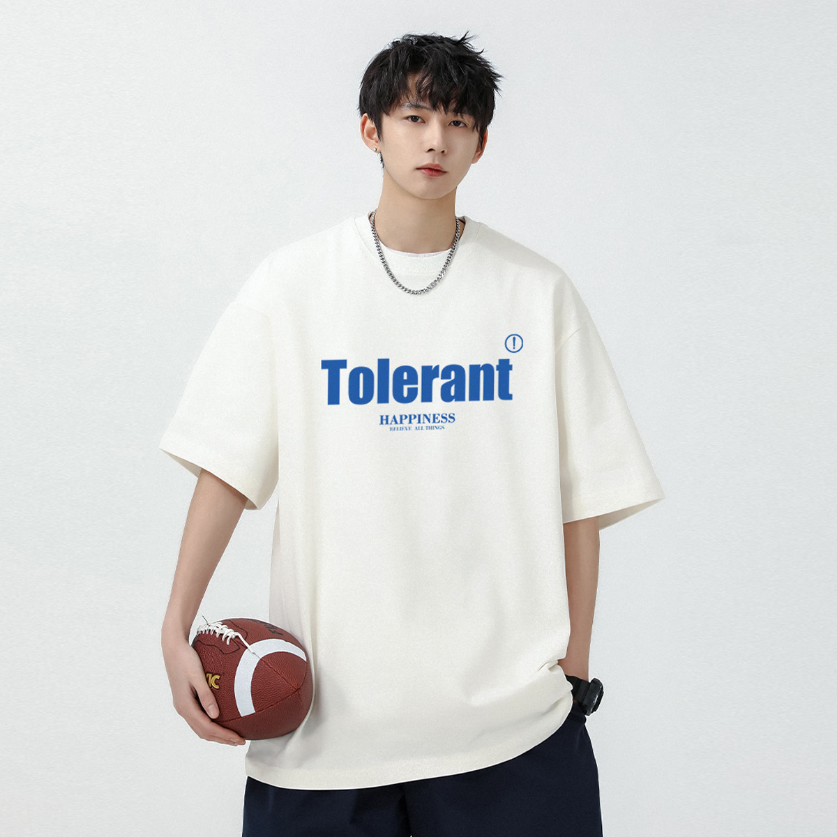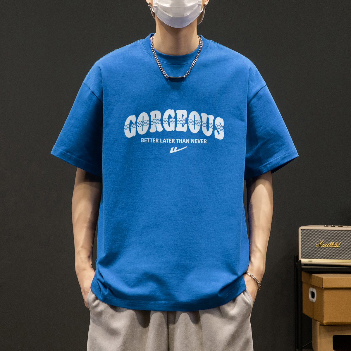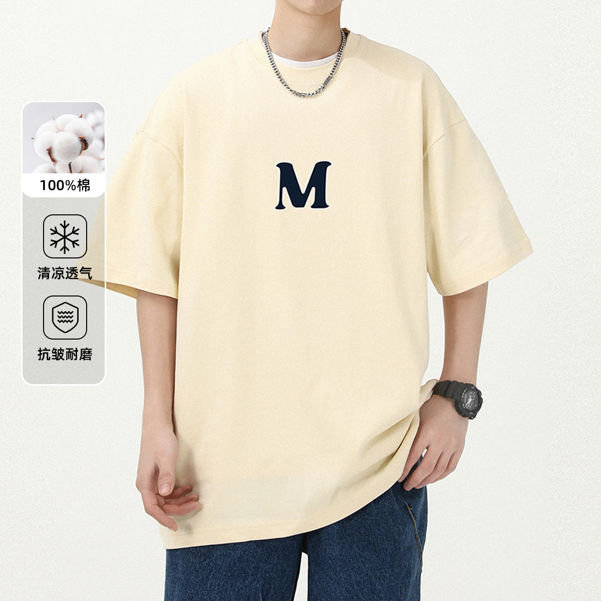 重磅T恤男宽松圆领纯棉短袖创意字母款情侣T恤简约运动潮流上衣 103123