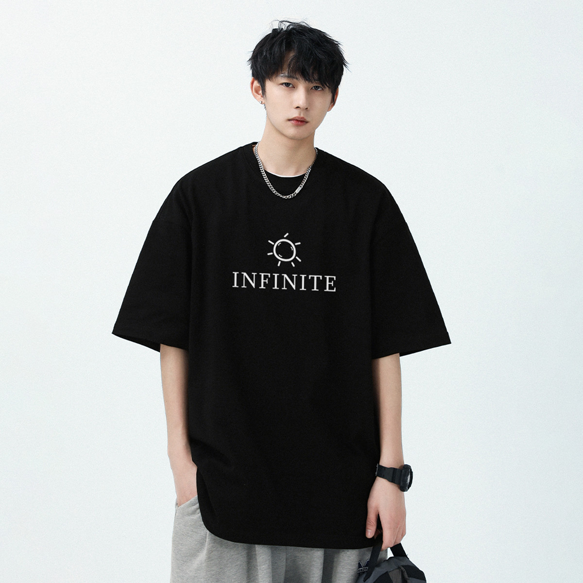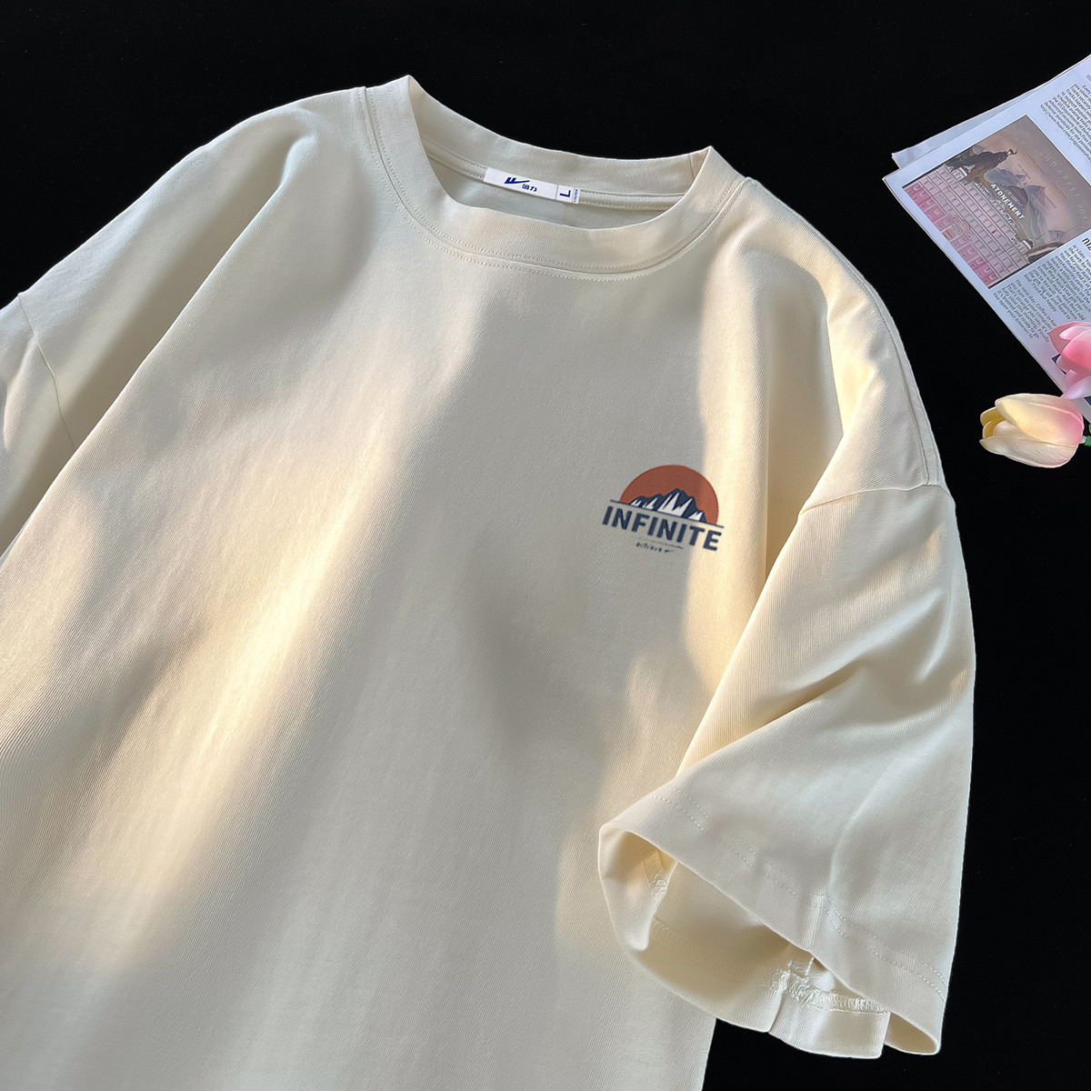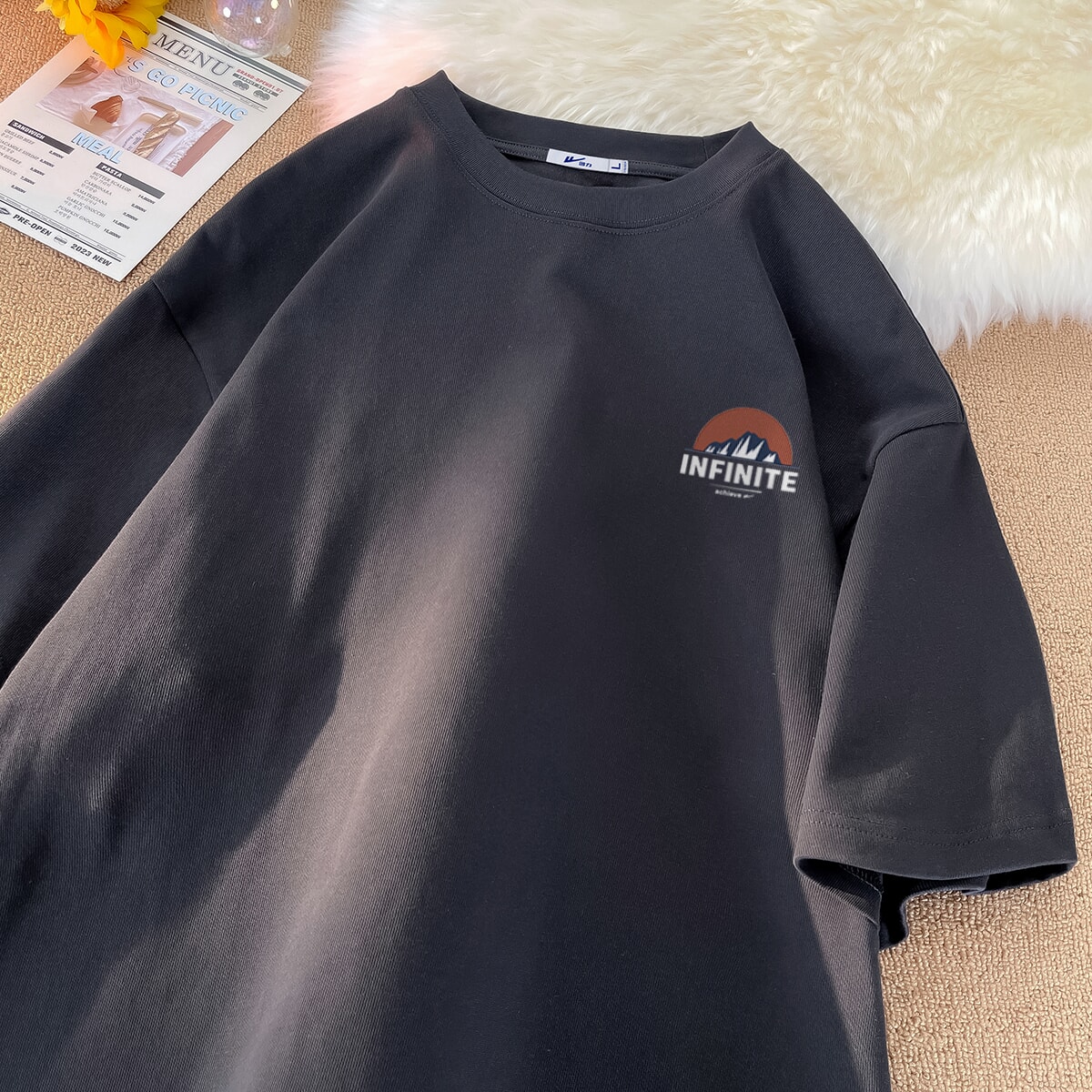重磅T恤男宽松圆领纯棉短袖创意字母款情侣T恤简约运动潮流上衣 148179