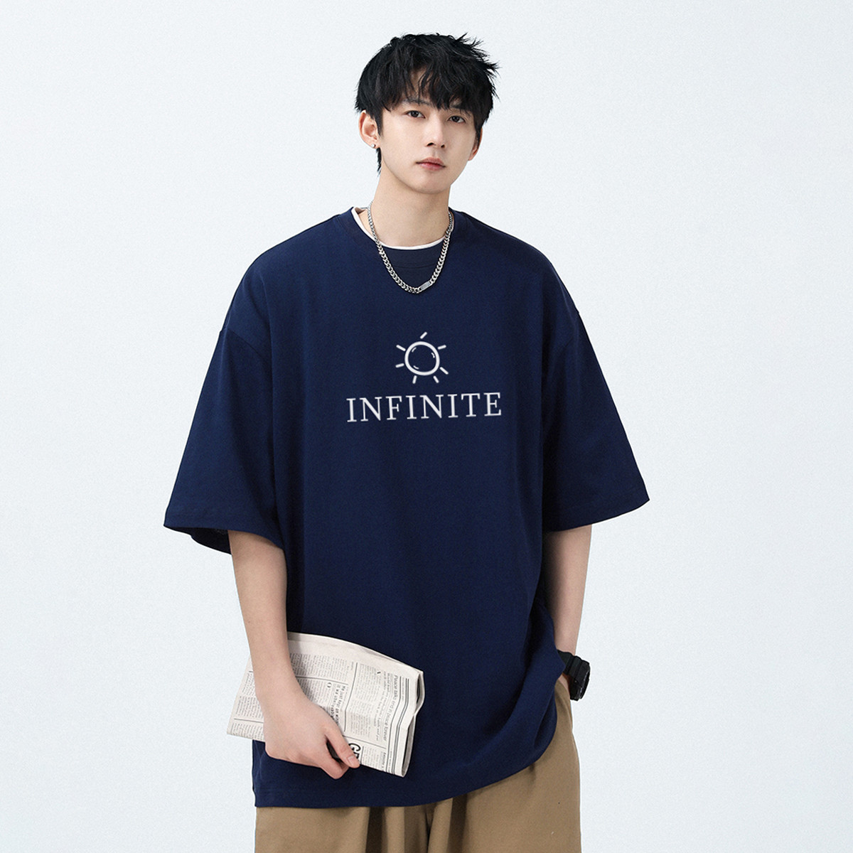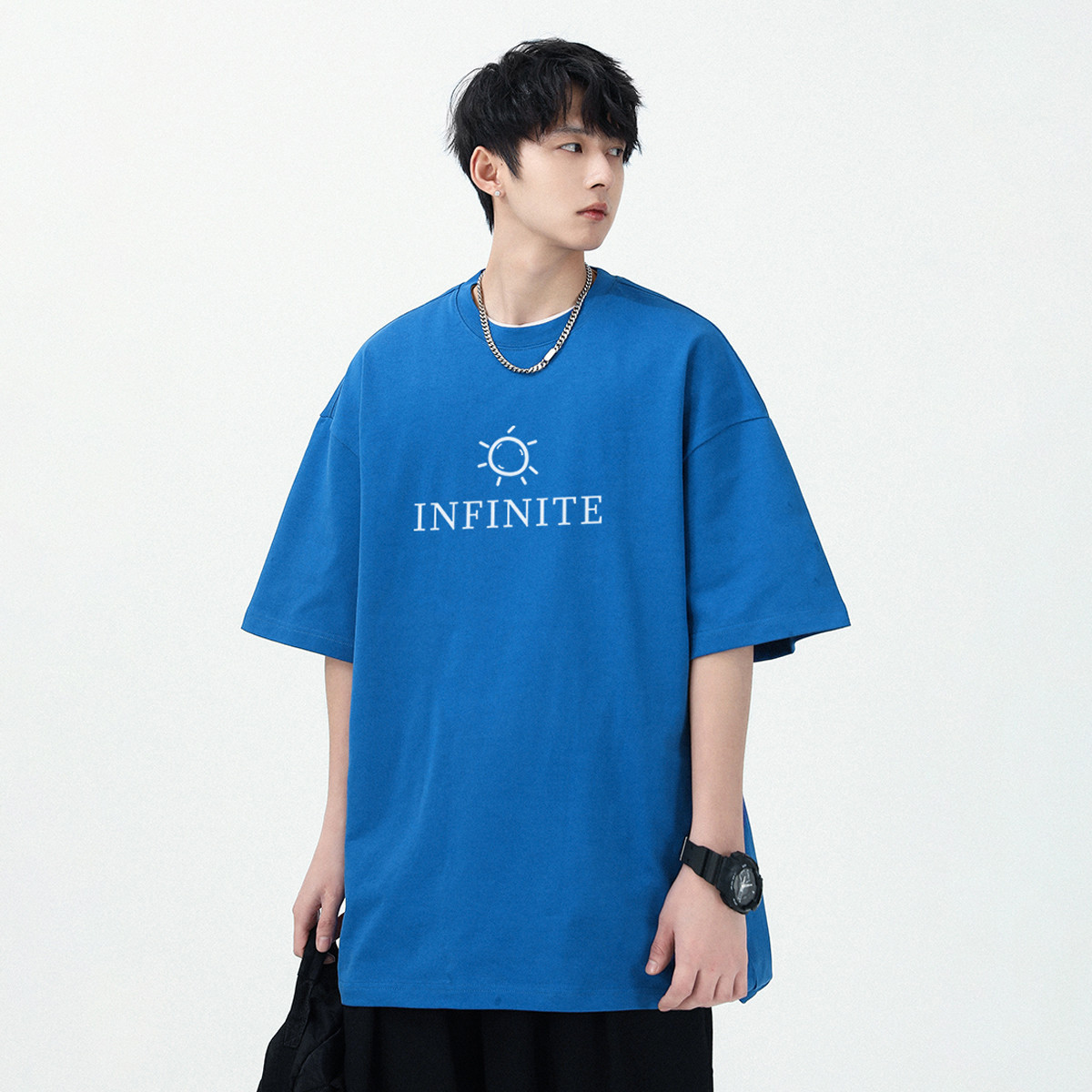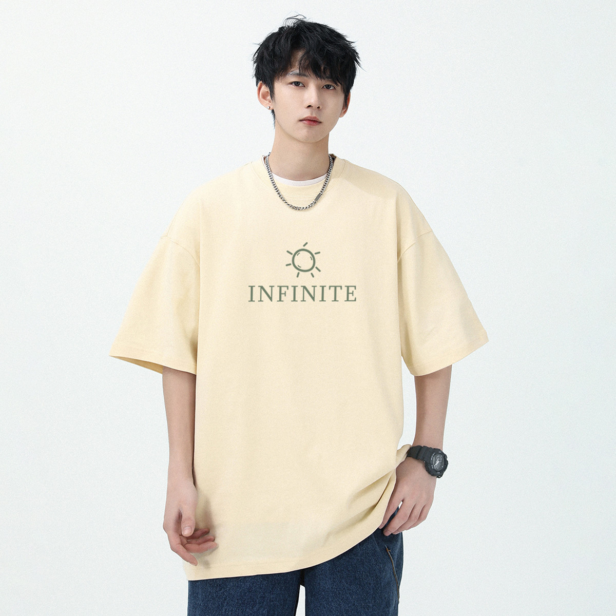 重磅T恤男宽松圆领纯棉短袖创意字母款情侣T恤简约运动潮流上衣 148179