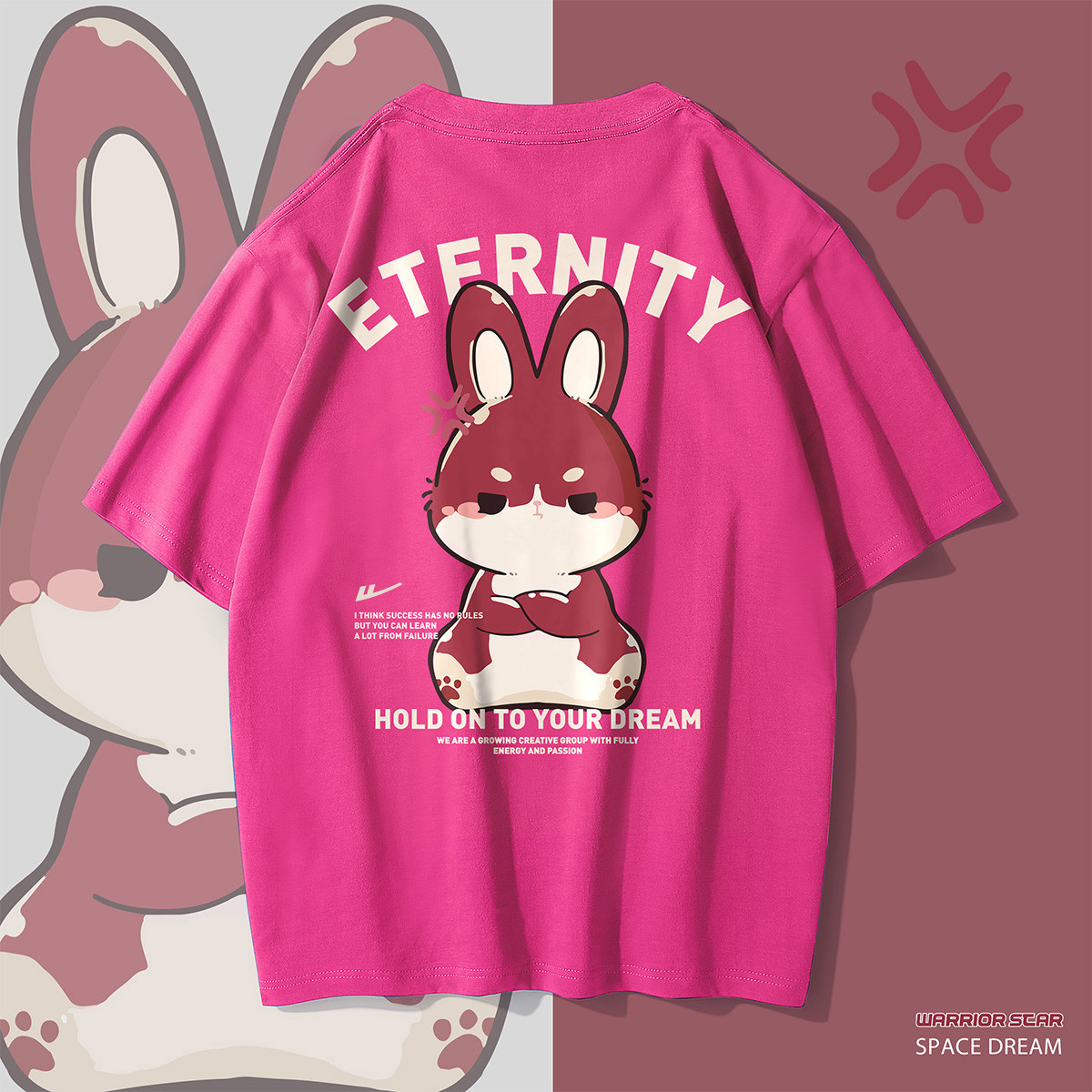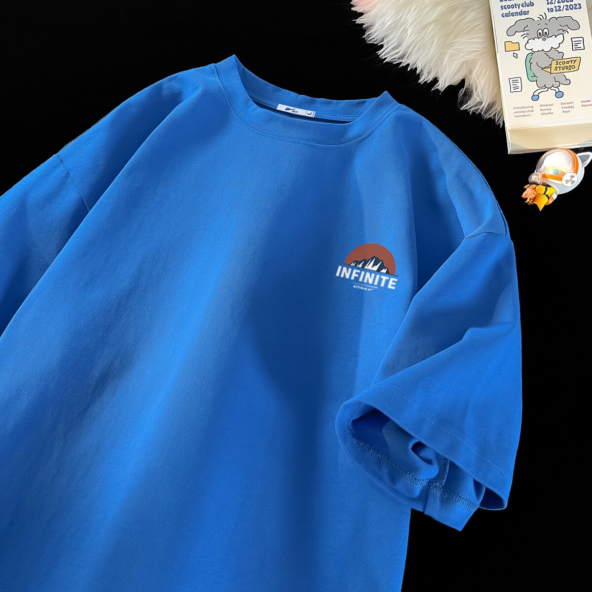 【100%棉】夏季纯色T恤日系潮牌休闲宽松情侣t透气运动上衣 049235