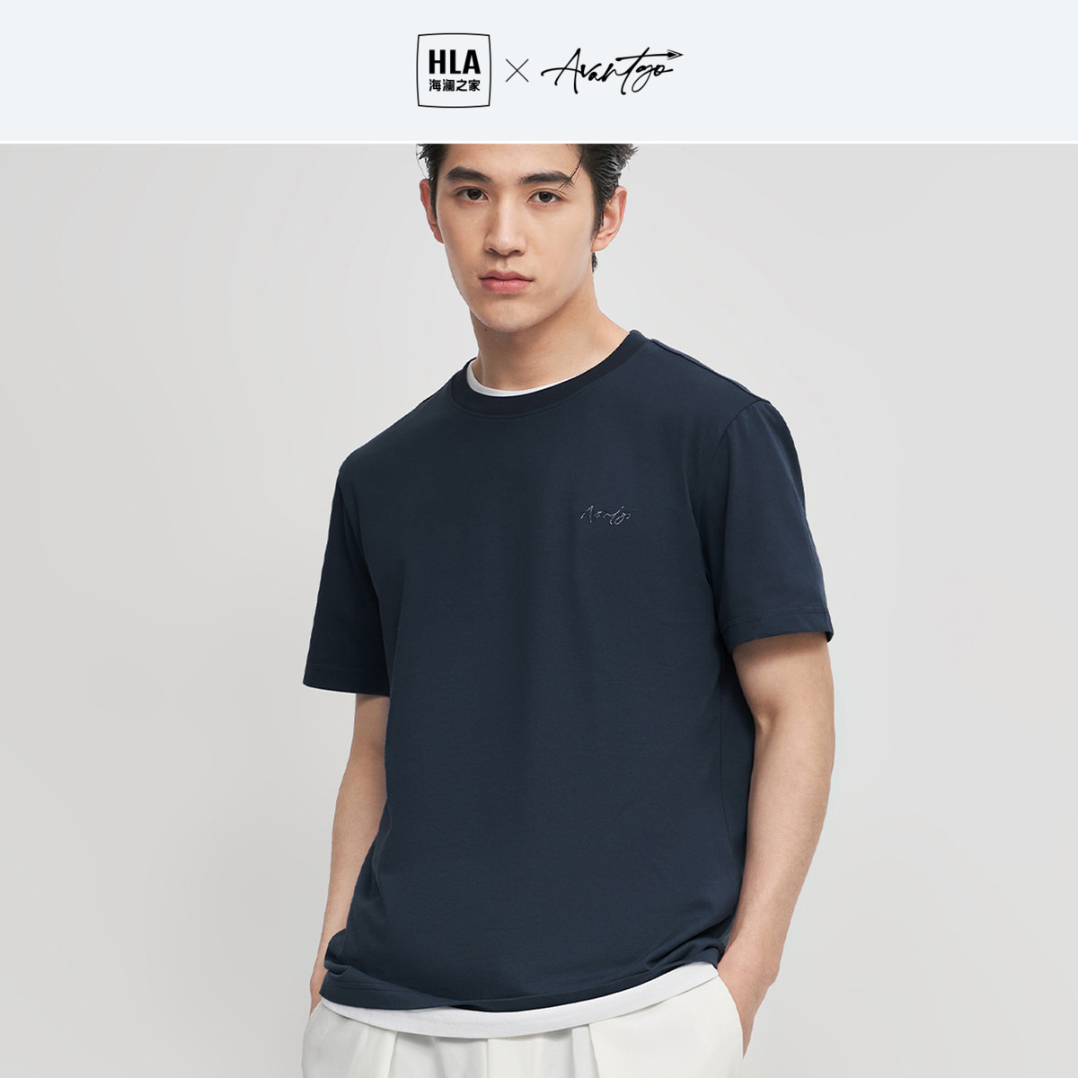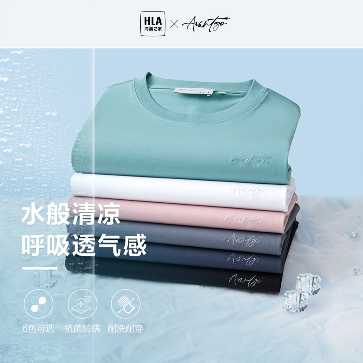 【凉感刺绣】夏季热销圆领字母清凉透气抗菌防螨纯色男士短袖T恤 219400