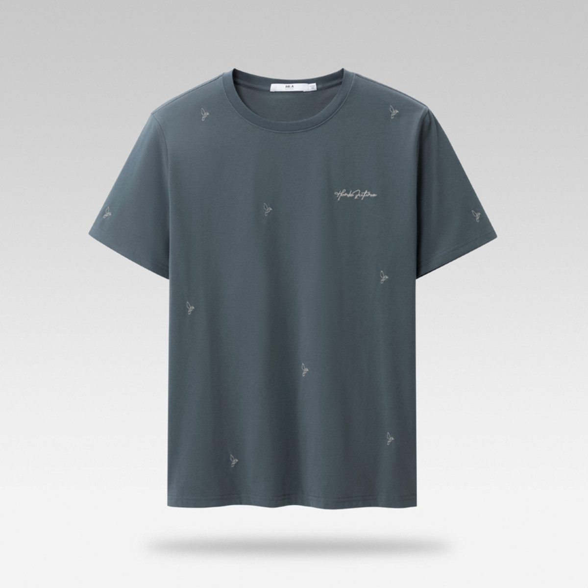 【凉感刺绣】夏季热销圆领字母清凉透气抗菌防螨纯色男士短袖T恤 215304