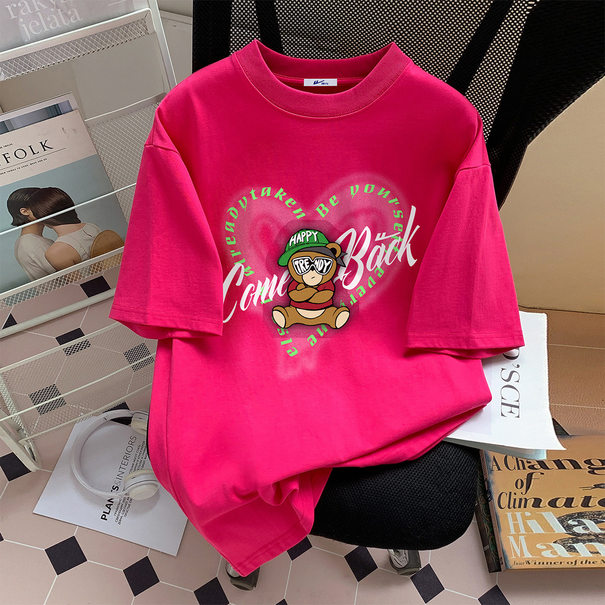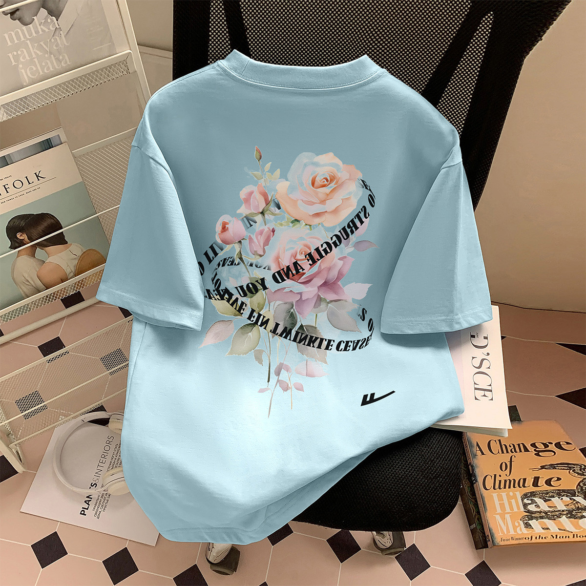 【100%棉】情侣纯棉玫瑰印花T恤女短袖ins慵懒风宽松半袖 866323
