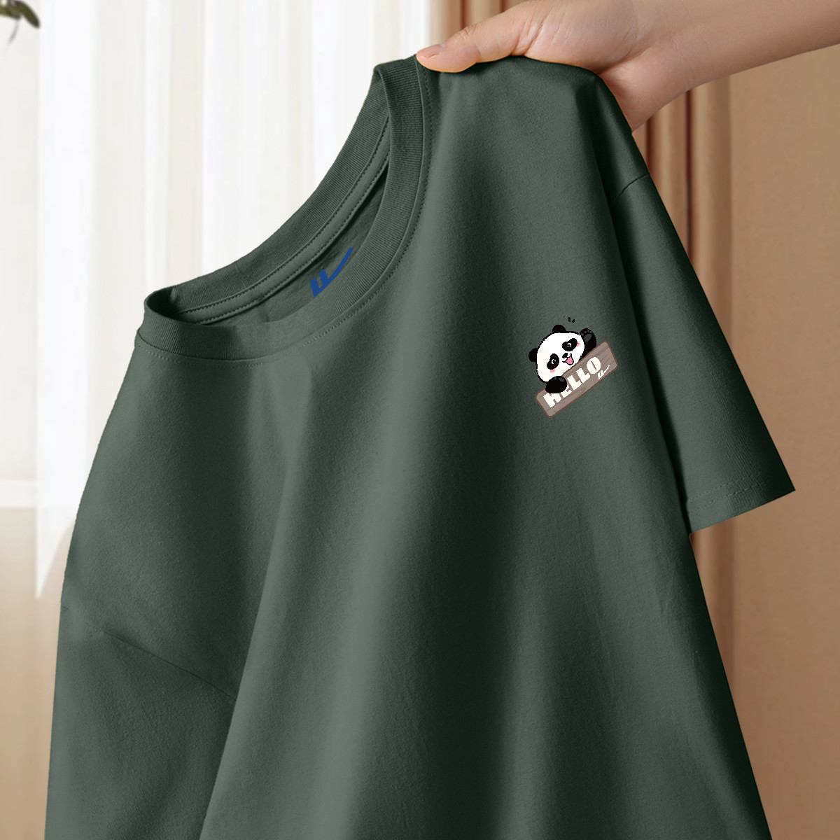 【220克重磅】t恤短袖男青少年国潮熊猫针织上衣宽松纯棉体恤 008403
