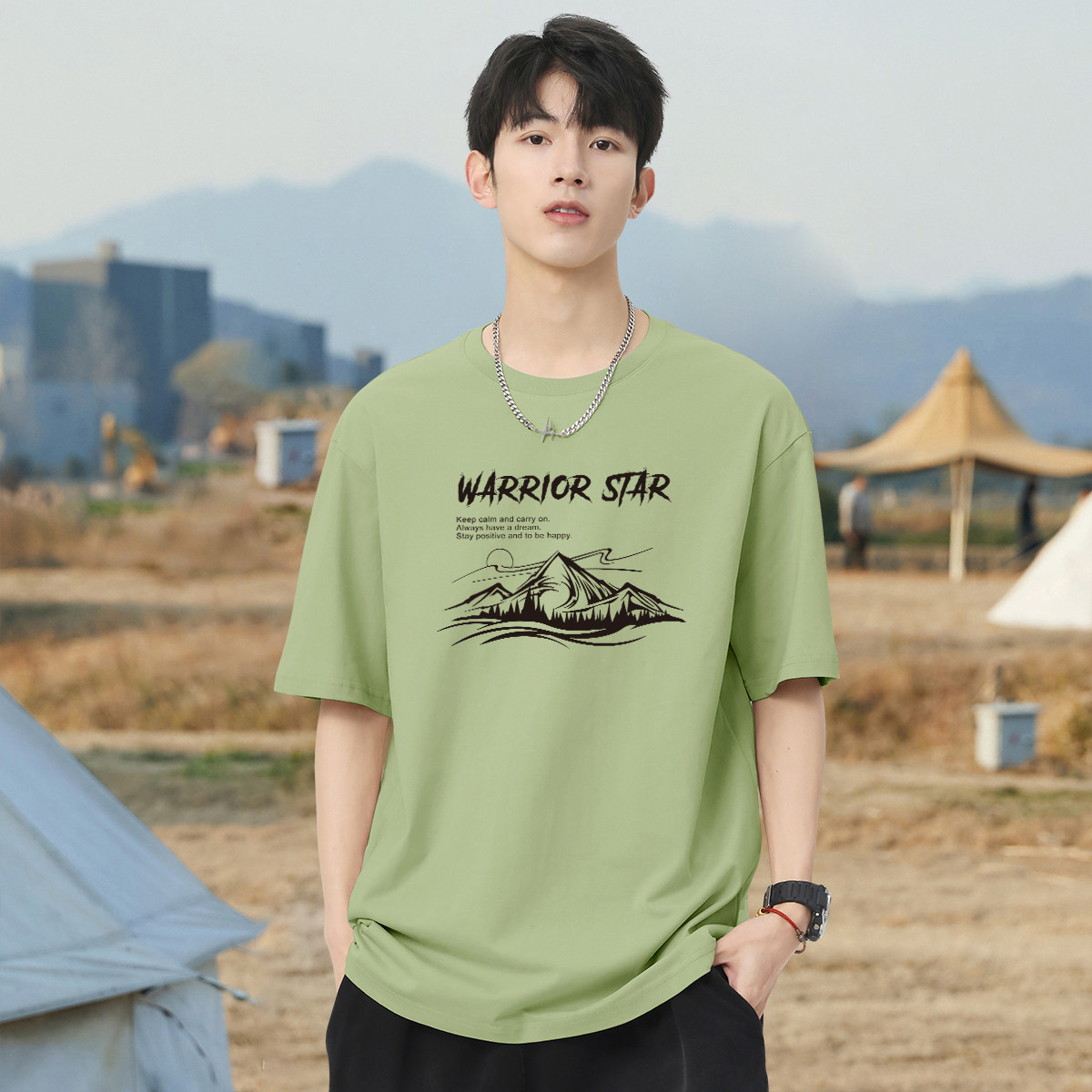 【100%棉】舒适夏季百搭男式t恤短袖t恤男宽松潮流运动T恤 679571