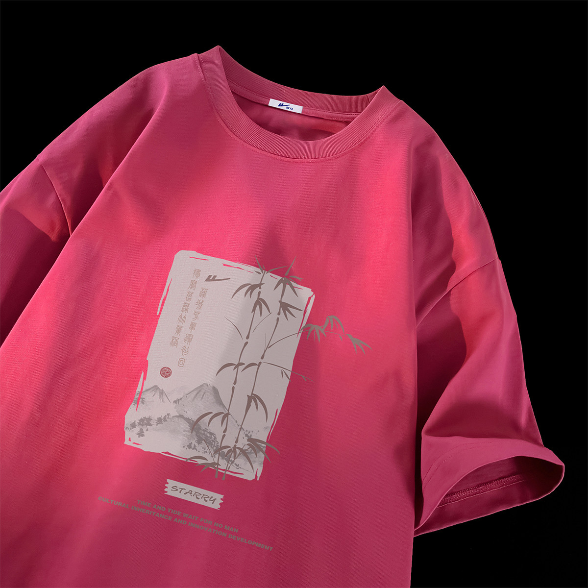 【100%纯棉】国潮复古风夏季宽松潮牌高街帅气男生短袖t恤衫 457555