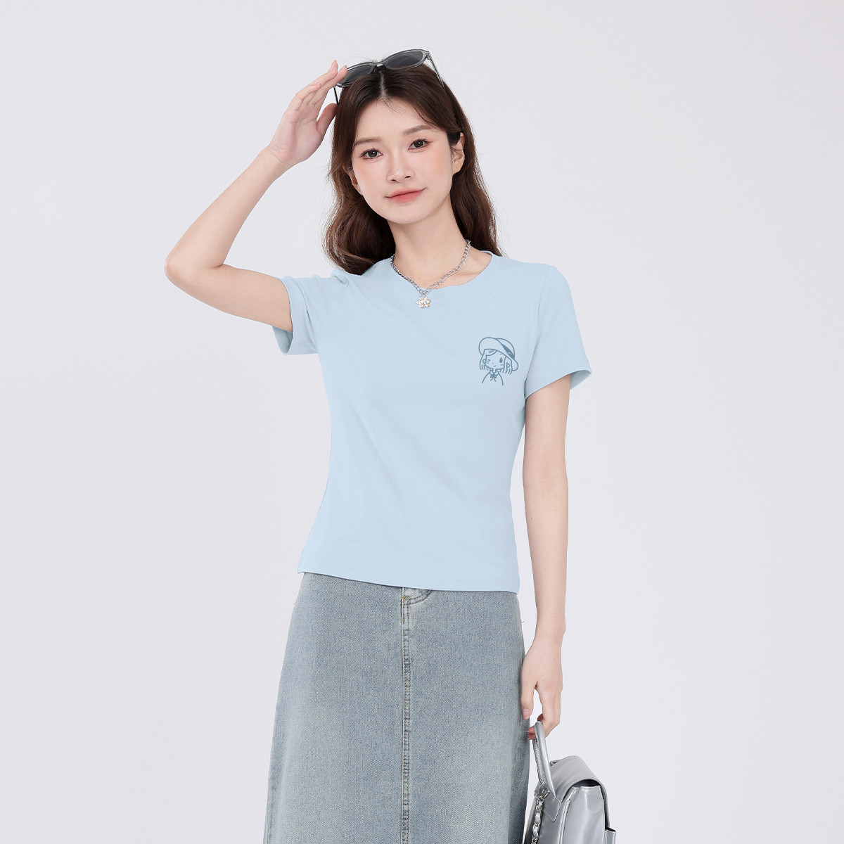 【女装】夏季纯棉短款短袖T恤女百搭休闲运动女式上衣 704275