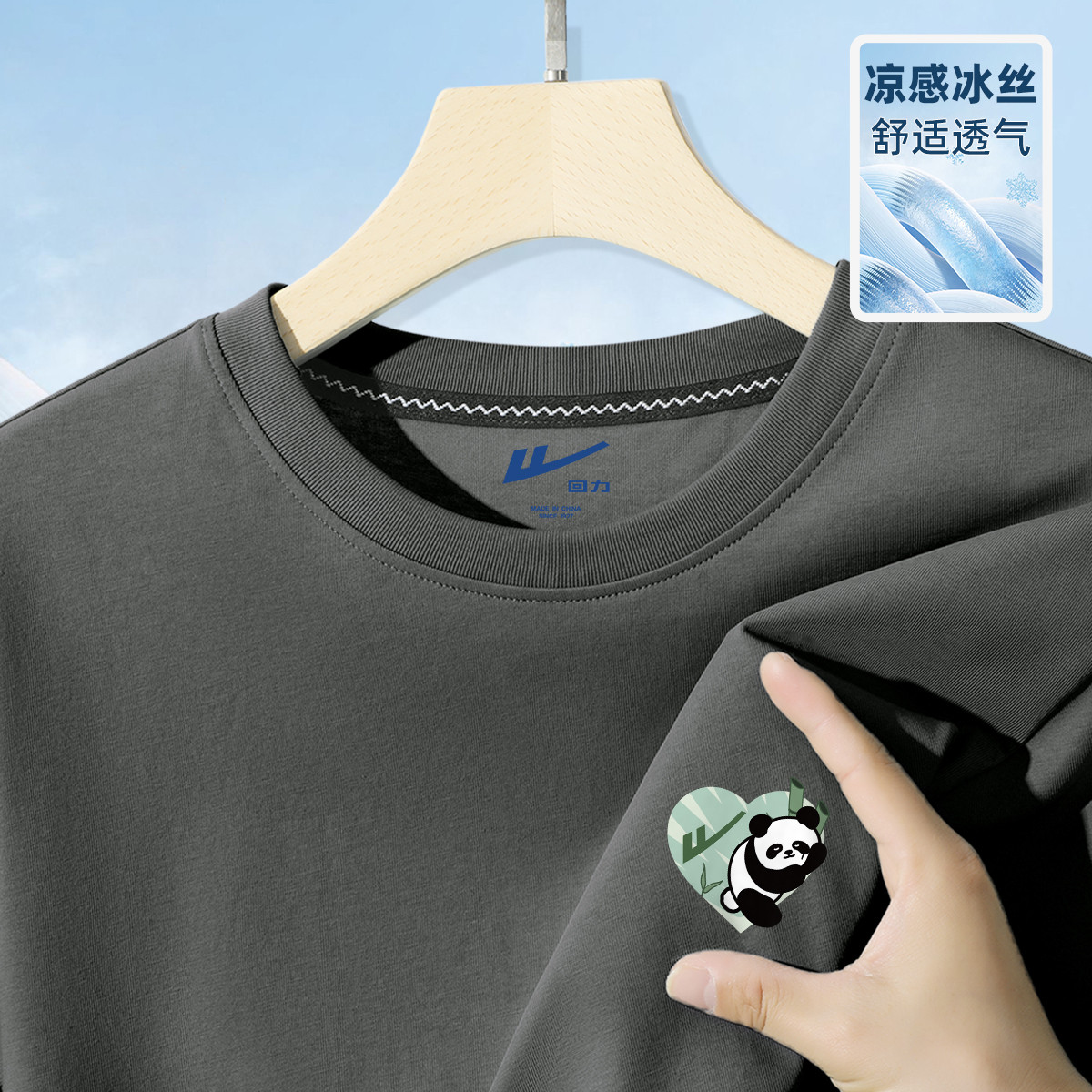 【冰感】青少年夏季冰丝短袖T恤男夏季卡通熊猫宽松潮牌运动上衣 332947