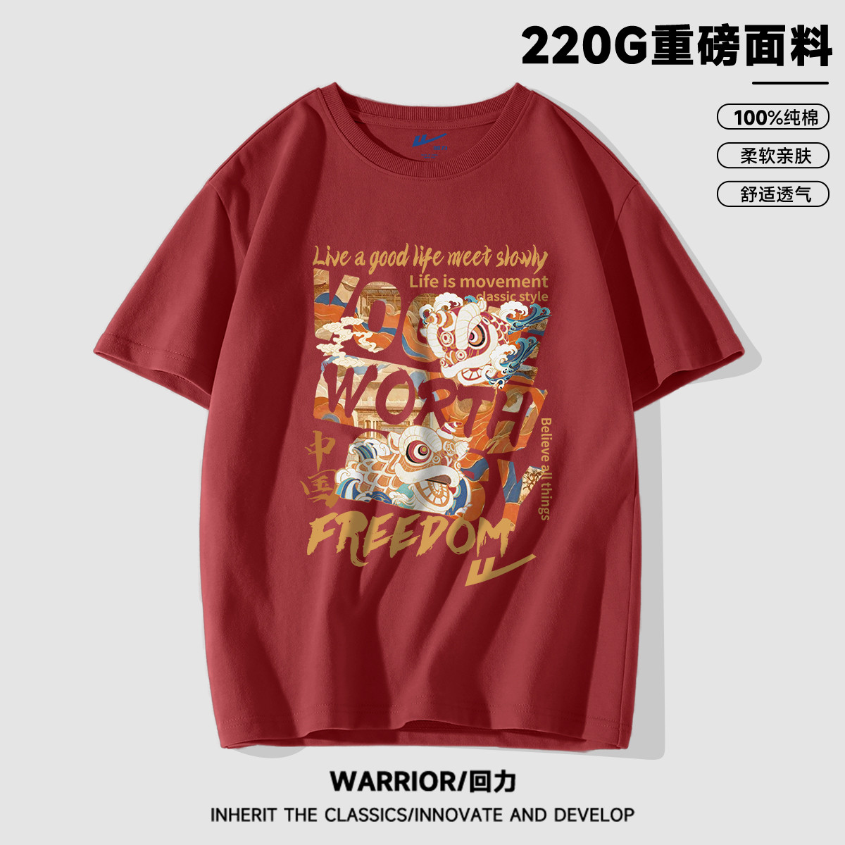 【100%纯棉】国潮复古风夏季宽松潮牌高街帅气男生短袖t恤衫 457555