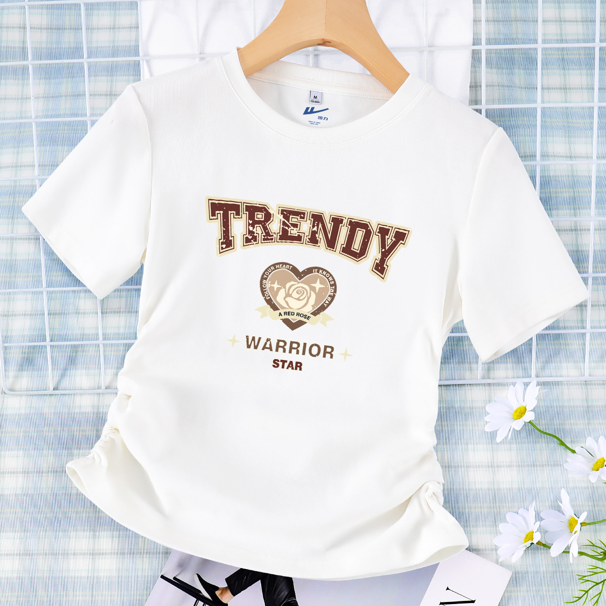 【女装正肩】女式短款小个子T恤紧身显瘦夏季小众抽褶设计感短袖 274259
