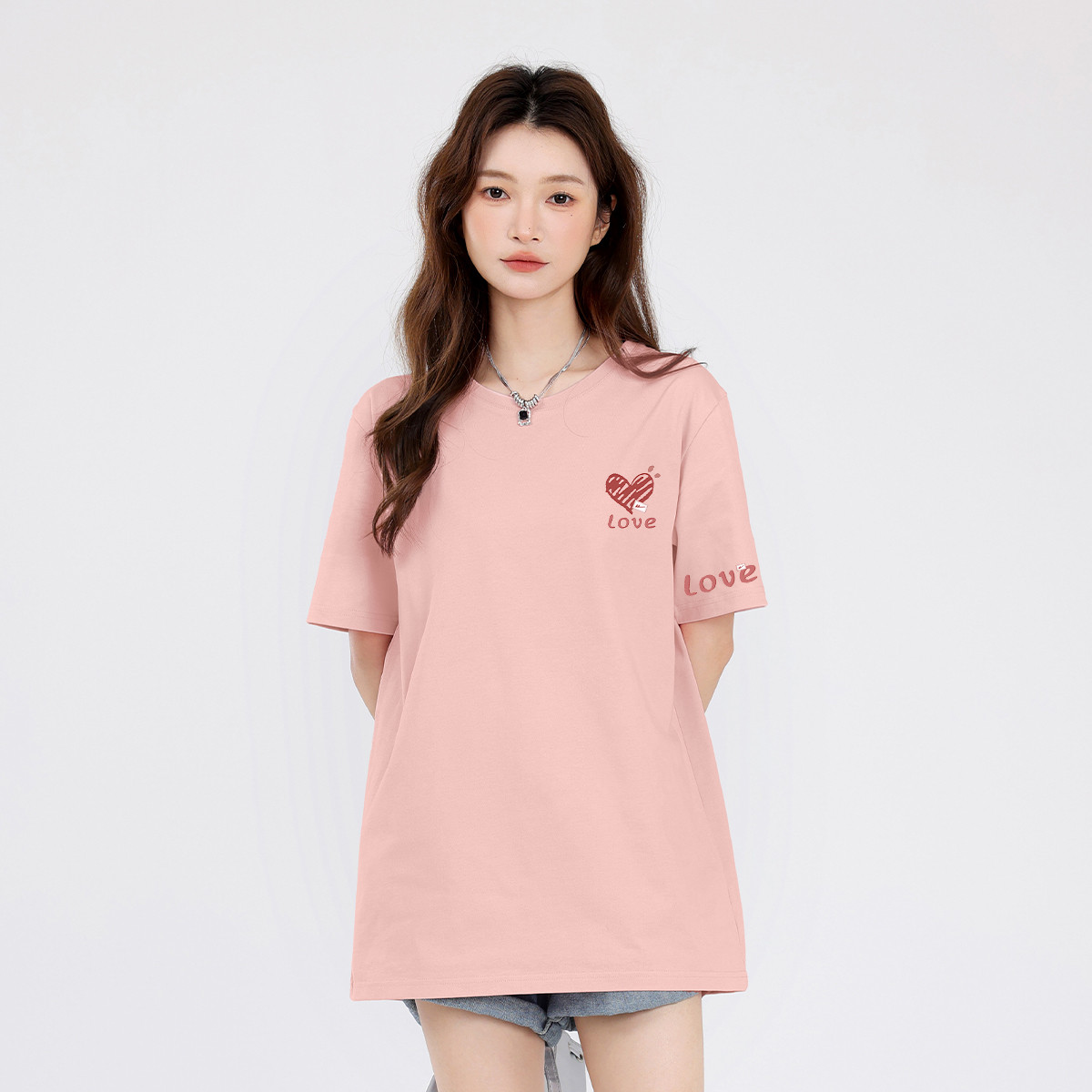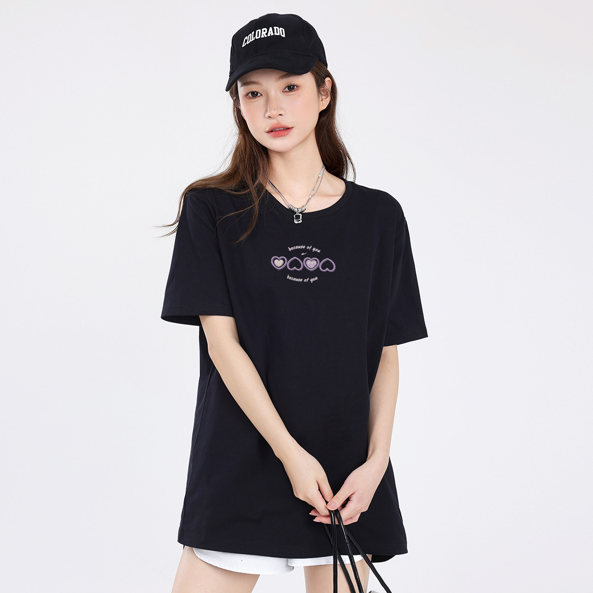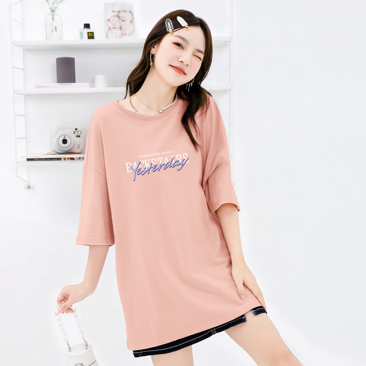 【女装】重磅纯棉短袖女式T恤夏季中长款宽松下衣失踪 662739