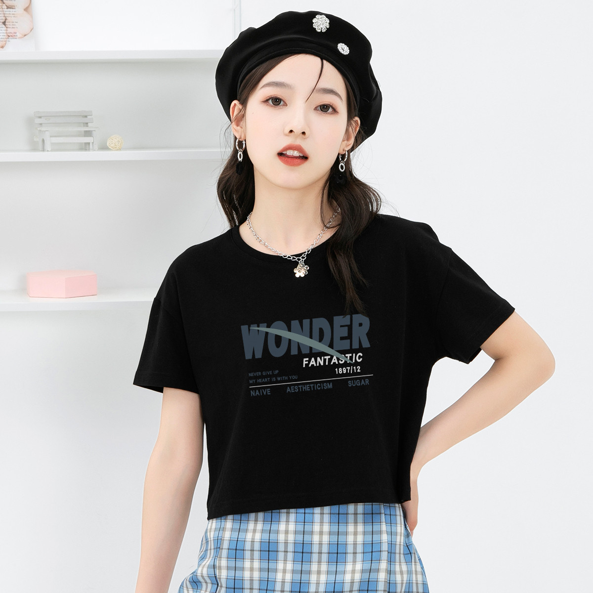 【女装】露脐女式t恤短款上衣夏季显白显瘦纯棉女式短袖 089491