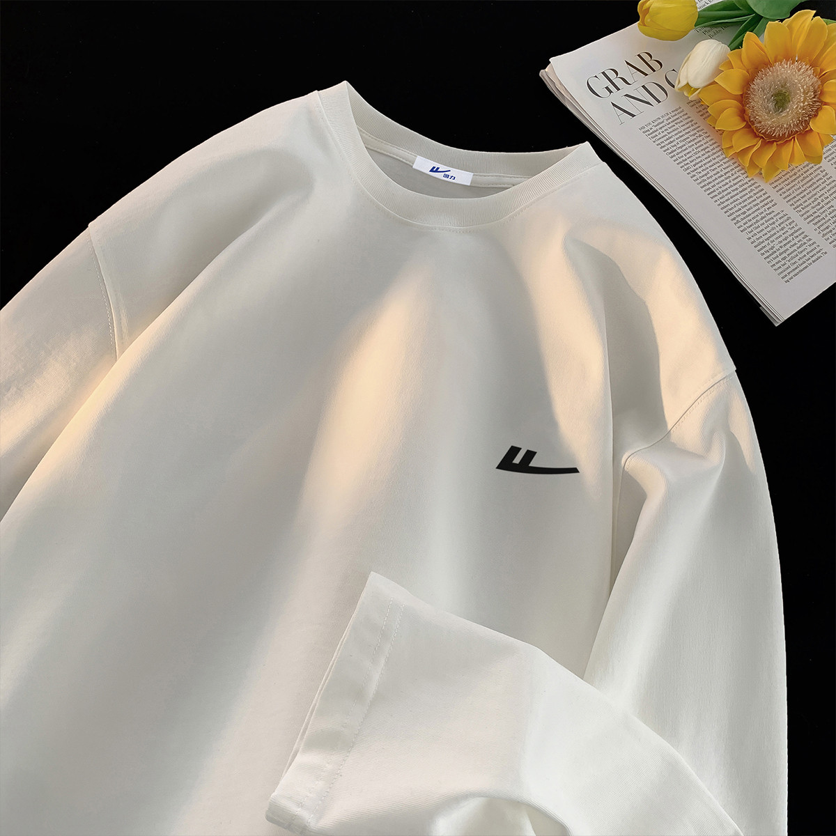 【220克重磅棉】短袖男宽松大码简约潮牌运动上衣重磅纯棉t恤 821331