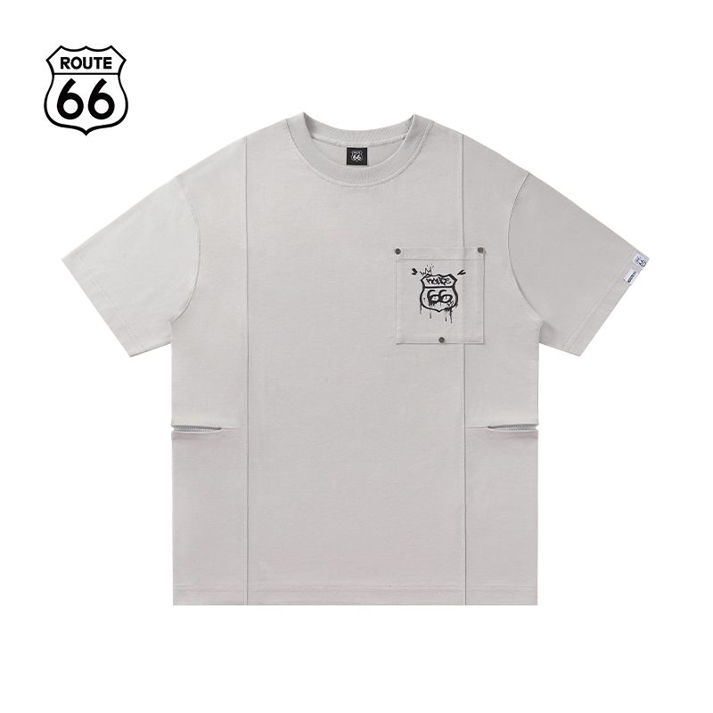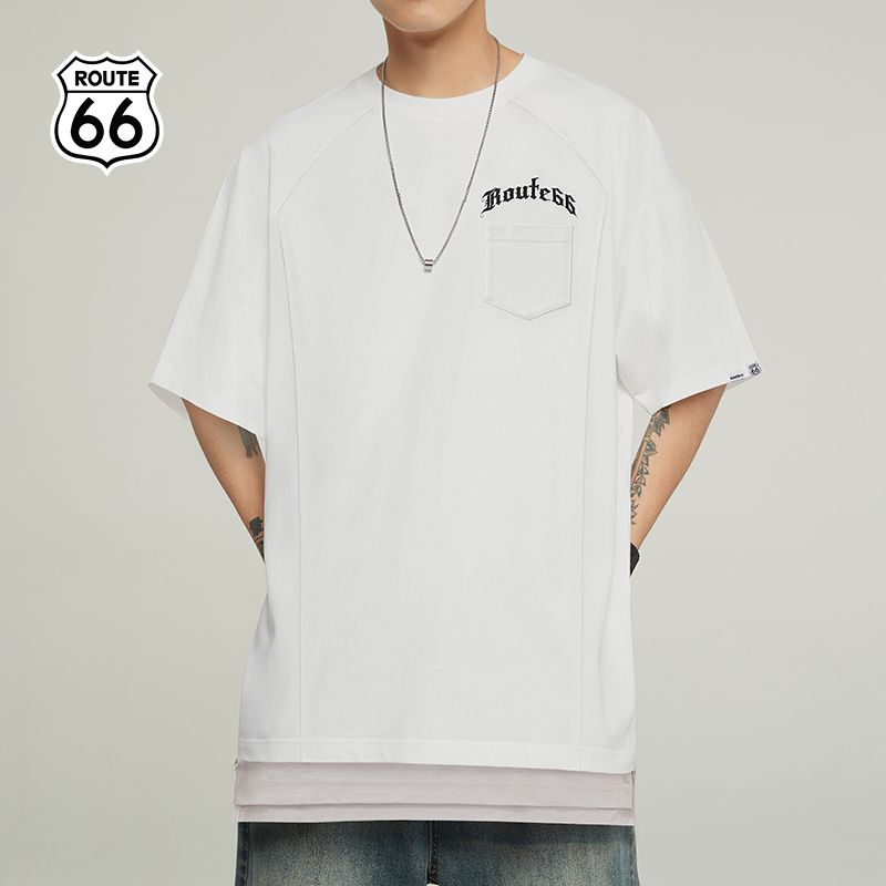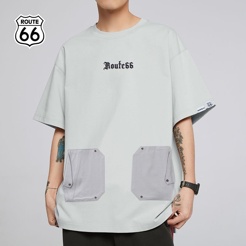 ROUTE66【公装T】系列美式凉感短袖 夏季拼接口袋T恤