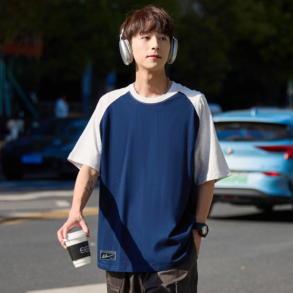 运动T恤潮牌夏季插肩袖T恤宽松复古撞色字母重磅T恤男 310931