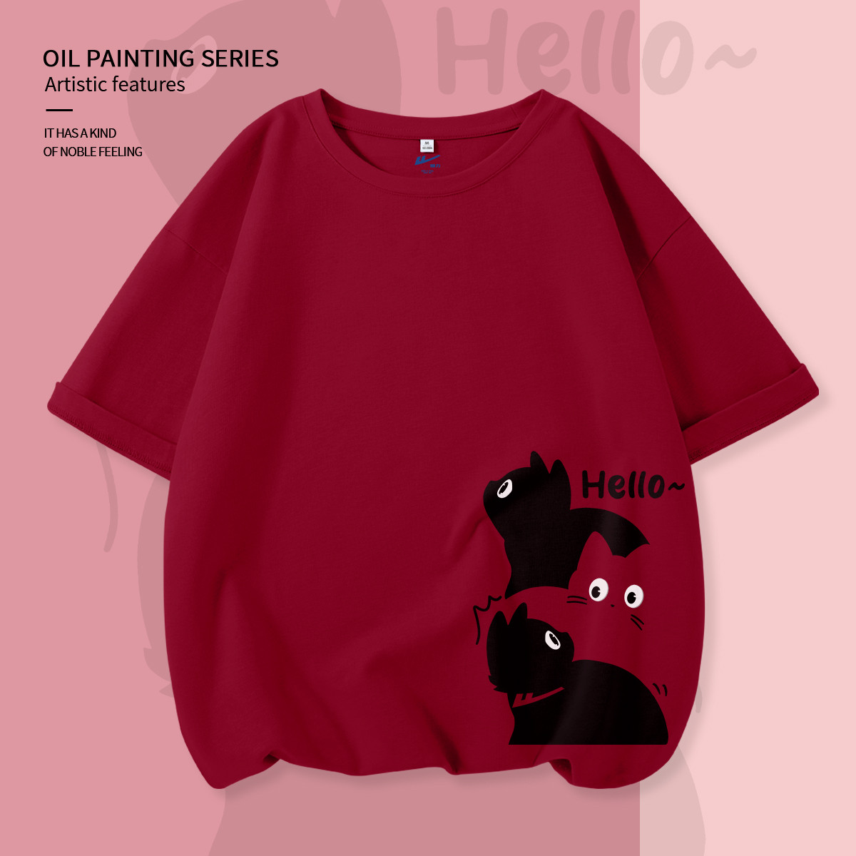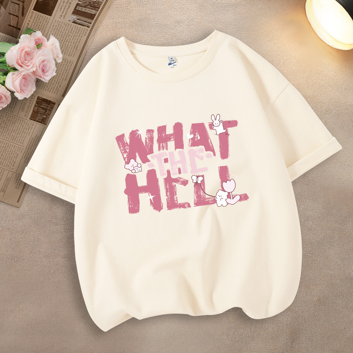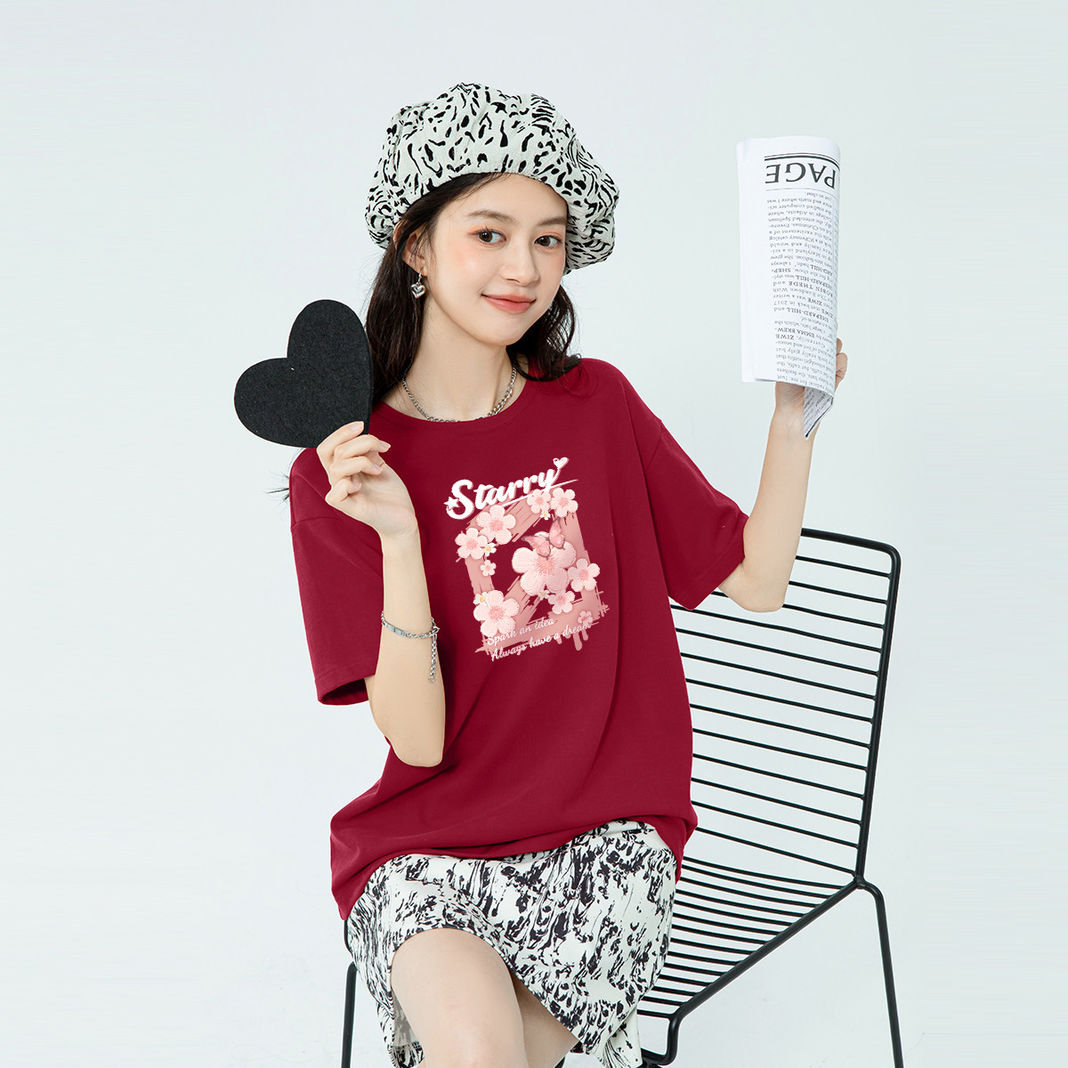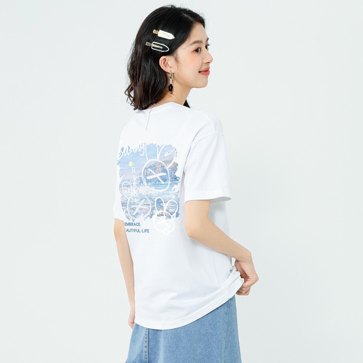 【女装重磅棉】夏季女式宽松运动T恤纯棉透气打底半袖印花上衣 999187