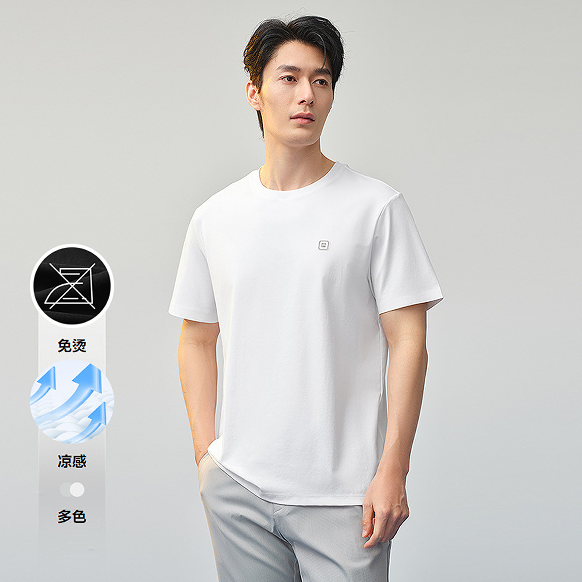【免烫凉感】25夏季时尚胸章经典圆领抗菌防螨男士短袖T恤 355080