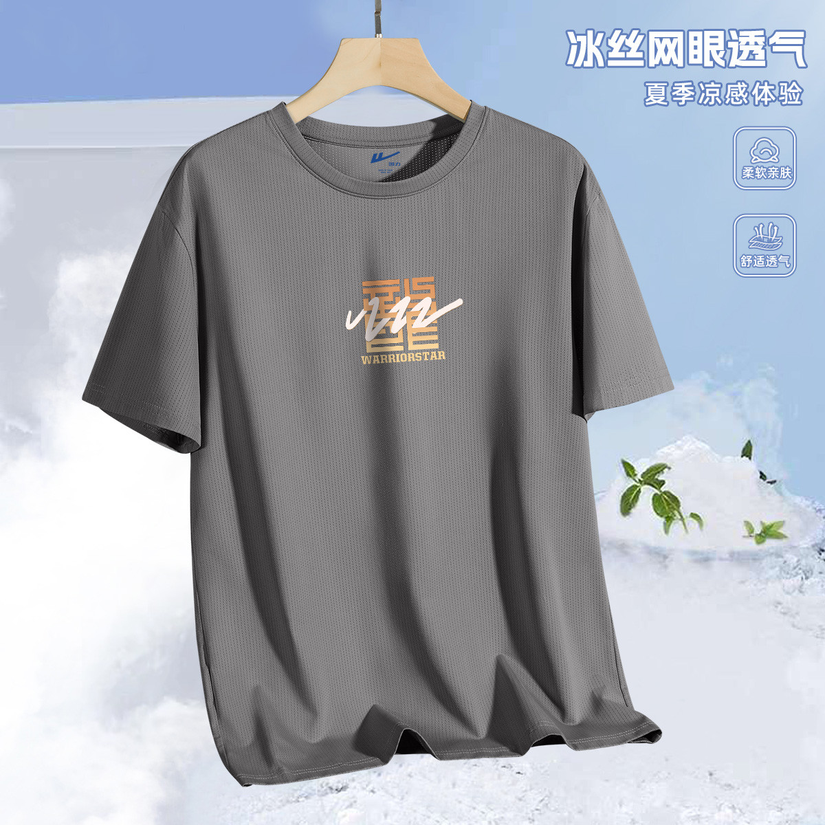 【凉感降温】国潮复古风冰丝短袖t恤男宽松透气跑步健身运动体恤 028819