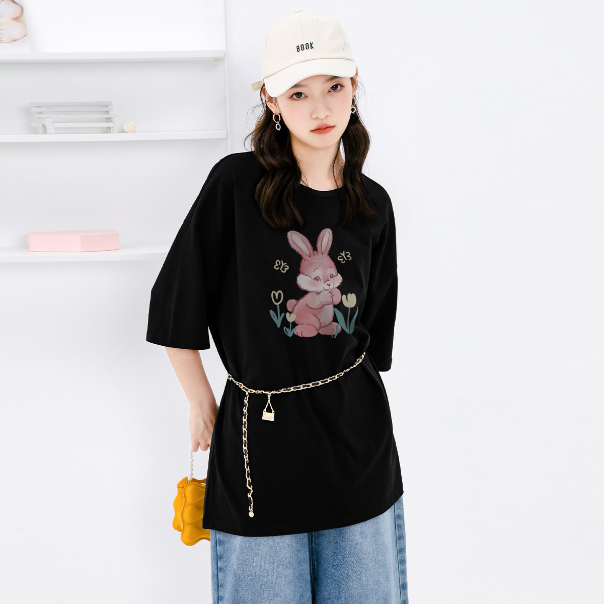 【女装】夏季重磅纯棉圆领女式T恤设计感中长款下衣失踪 180051