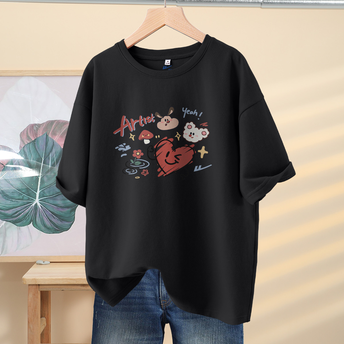 【女装重磅棉】夏季女式宽松运动T恤纯棉透气打底大码印花上衣 081747