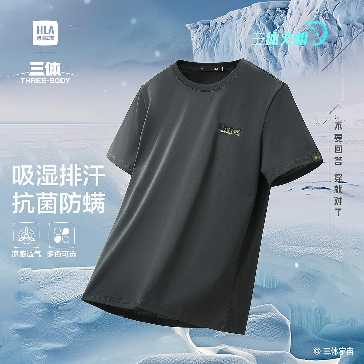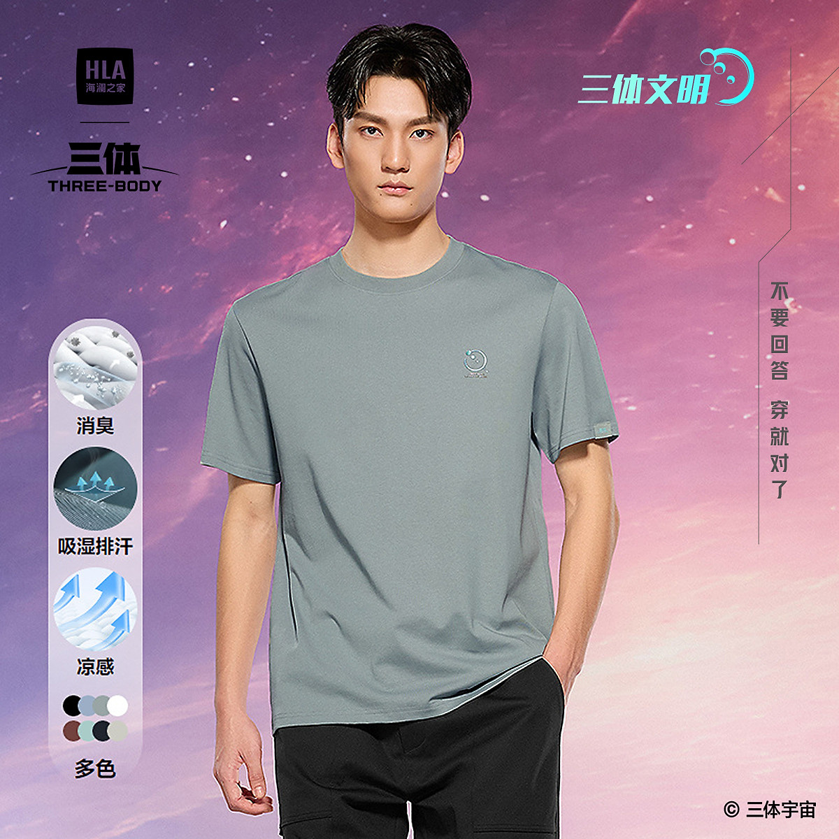 【三体联名】25夏季吸湿排汗圆领凉感抗菌防螨刺绣男士短袖T恤 265992