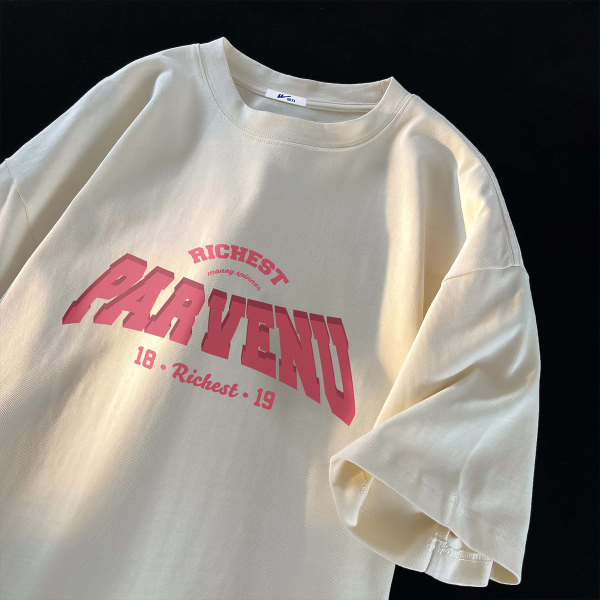 2025重磅纯棉夏季短袖t恤女美式宽松休闲运动上衣情侣体恤衫 736211