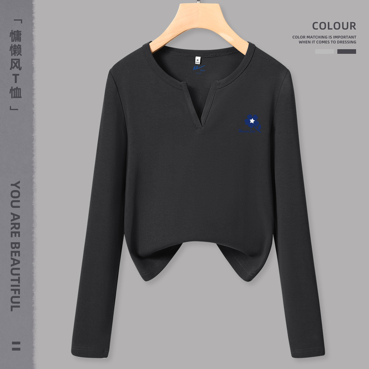 【女装】春秋小V领长袖T恤女修身显瘦休闲百搭打底上衣 371091