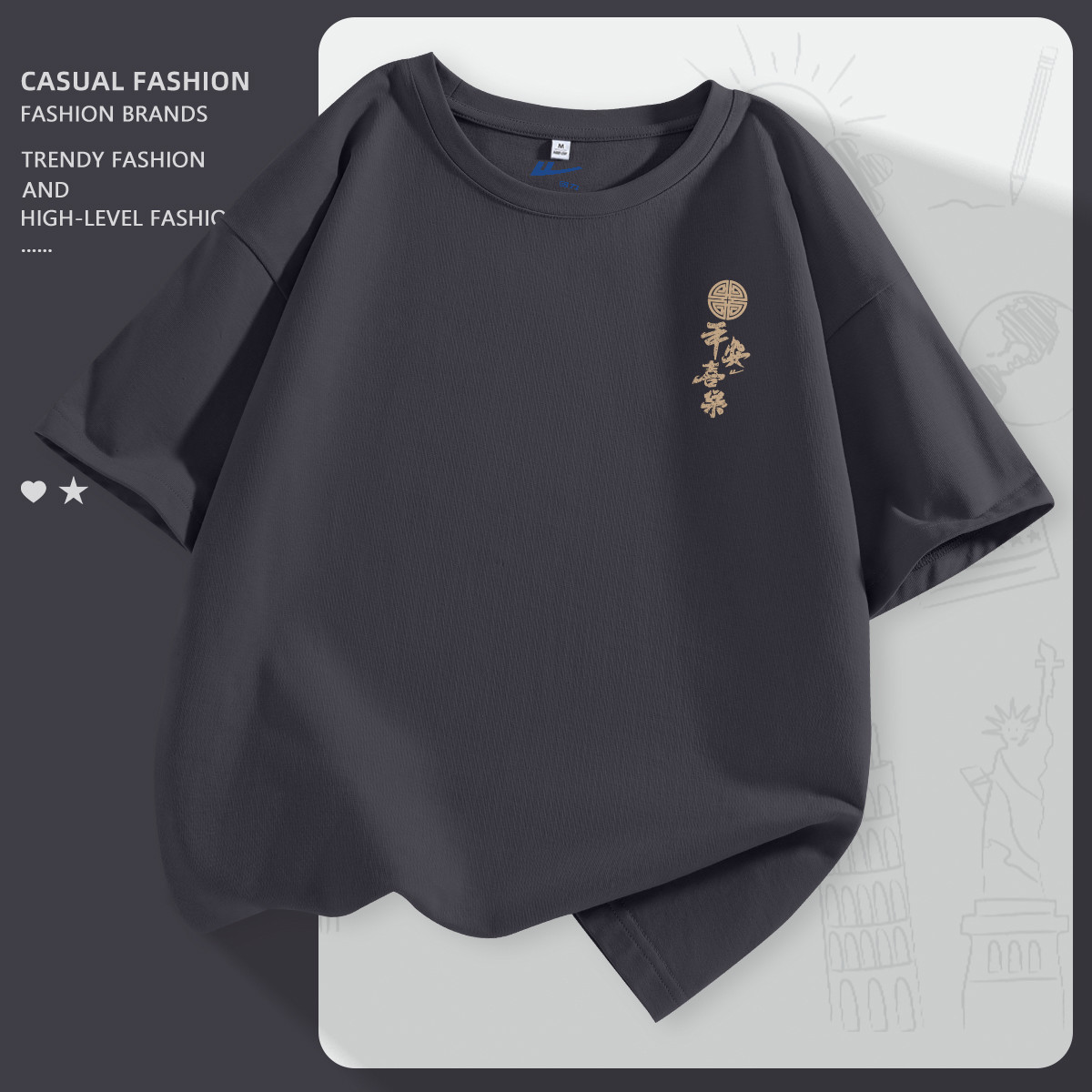 【冰爽透气】夏季薄款冰丝网眼短袖男宽松潮牌国潮风平安喜乐T恤 912019
