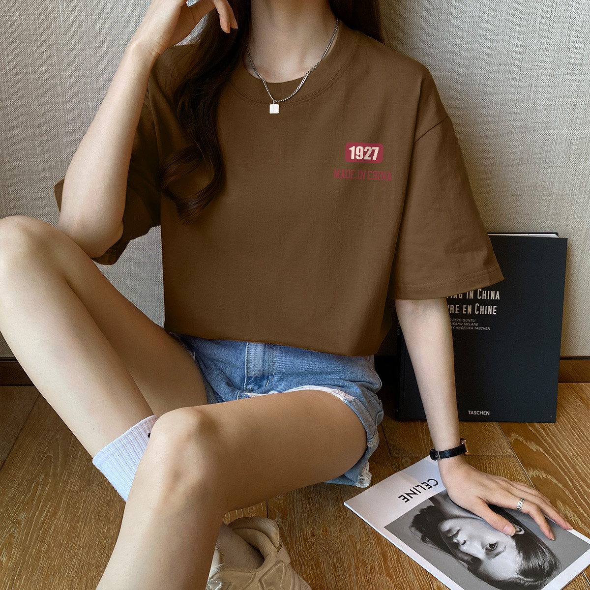 纯棉短袖T恤夏季时尚百搭休闲女上衣女宽松t显瘦印花t恤女式潮 009811