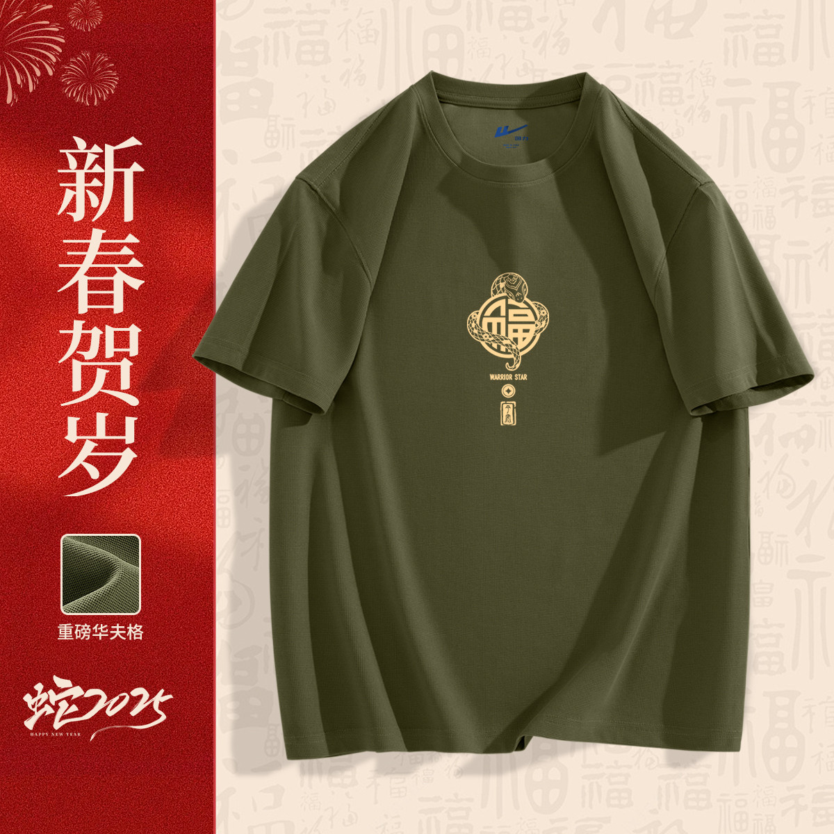【蛇年大吉】男款运动短袖夏季中国风平安福宽松大码半袖T恤衫男 508371