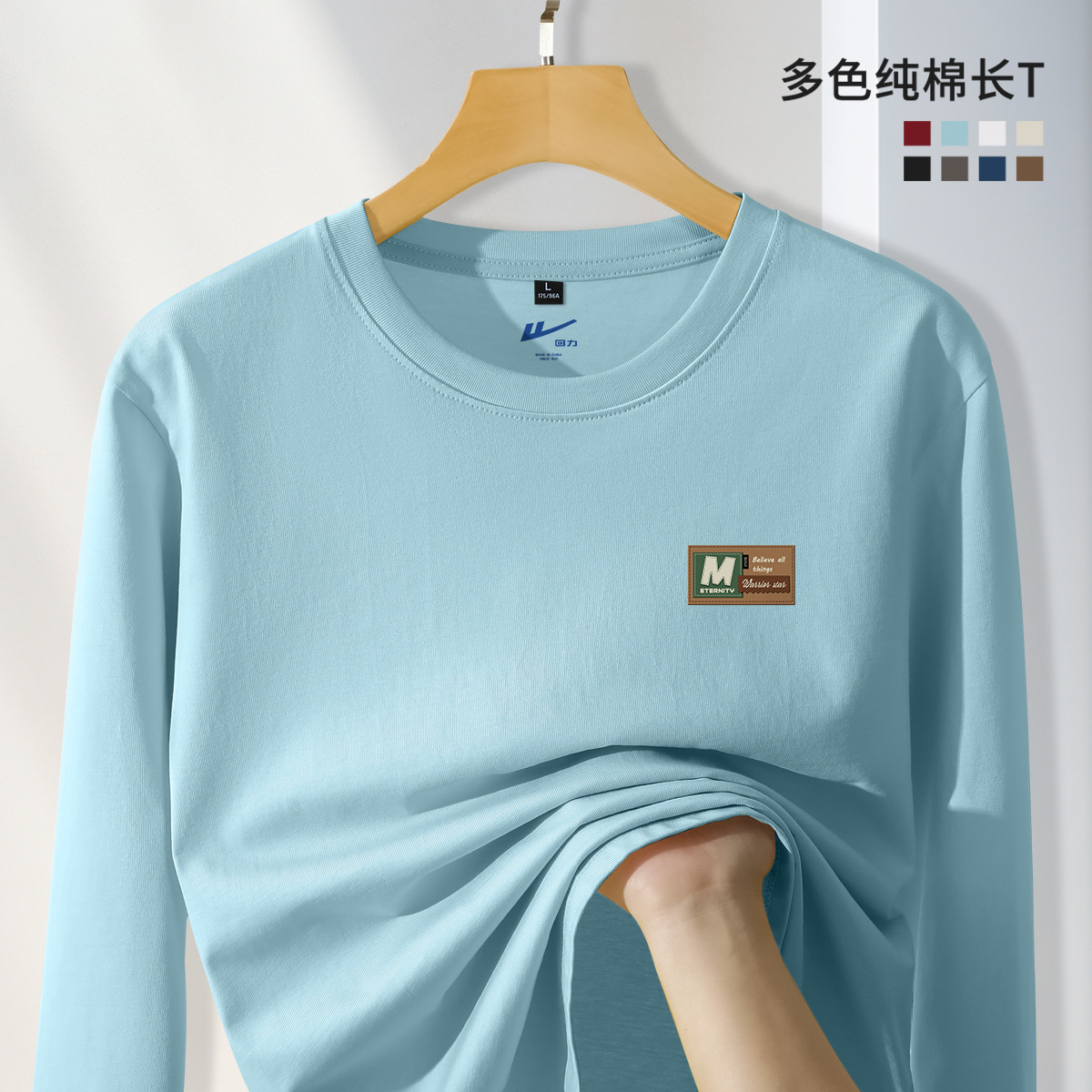 【220克纯棉】春秋100%纯棉运动上衣男士长袖T恤男打底衫 589459