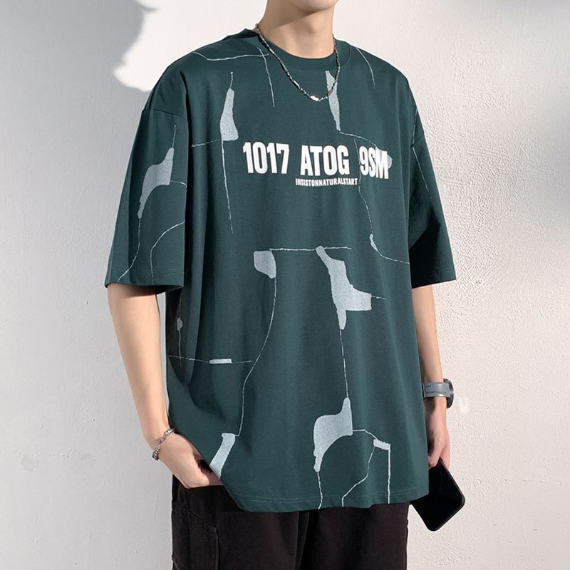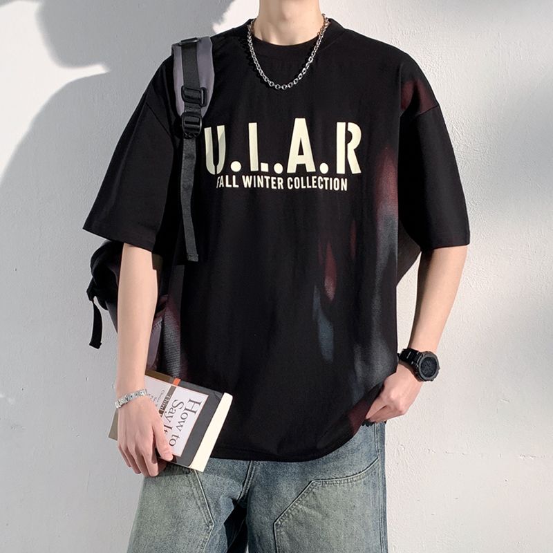 型煜 夏季新款圆领宽松男士字母短袖t恤