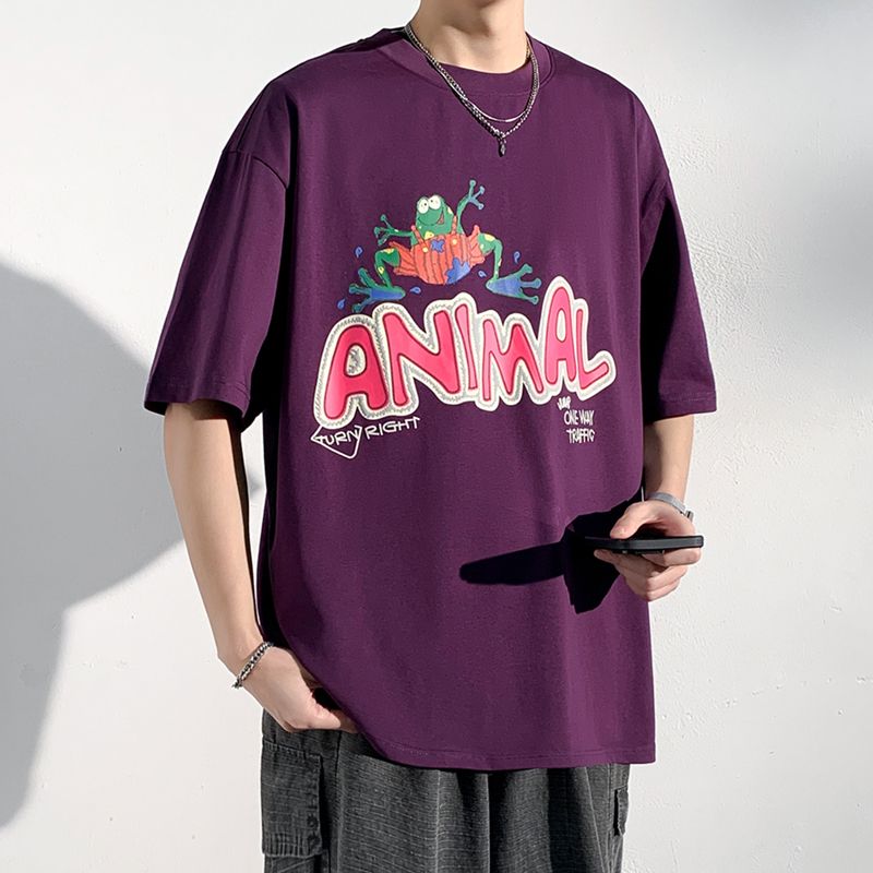【100%纯棉】国潮复古风夏季宽松潮牌高街帅气男生短袖t恤衫 457555