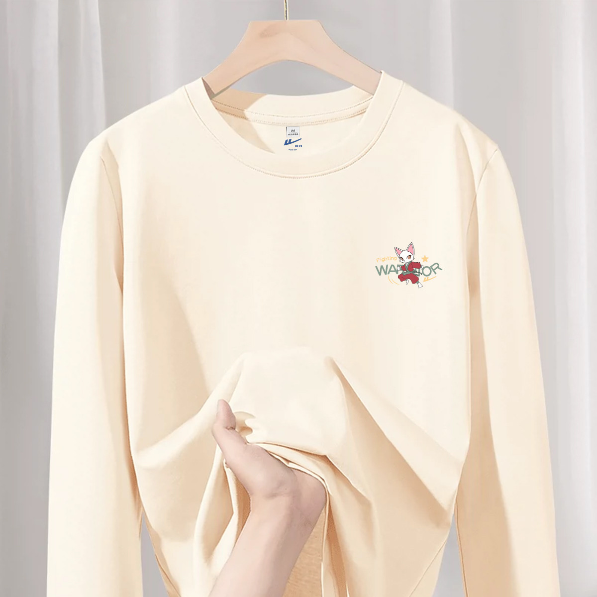 【女装重磅棉】春秋蛇年贺岁纯棉长袖T恤女宽松显瘦休闲打底上衣 649811
