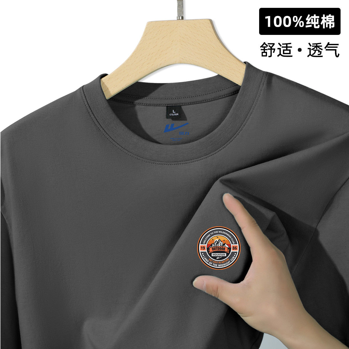 【220克重磅棉】夏季男休闲百搭绵柔短袖简约时尚胸标男式t恤 687123