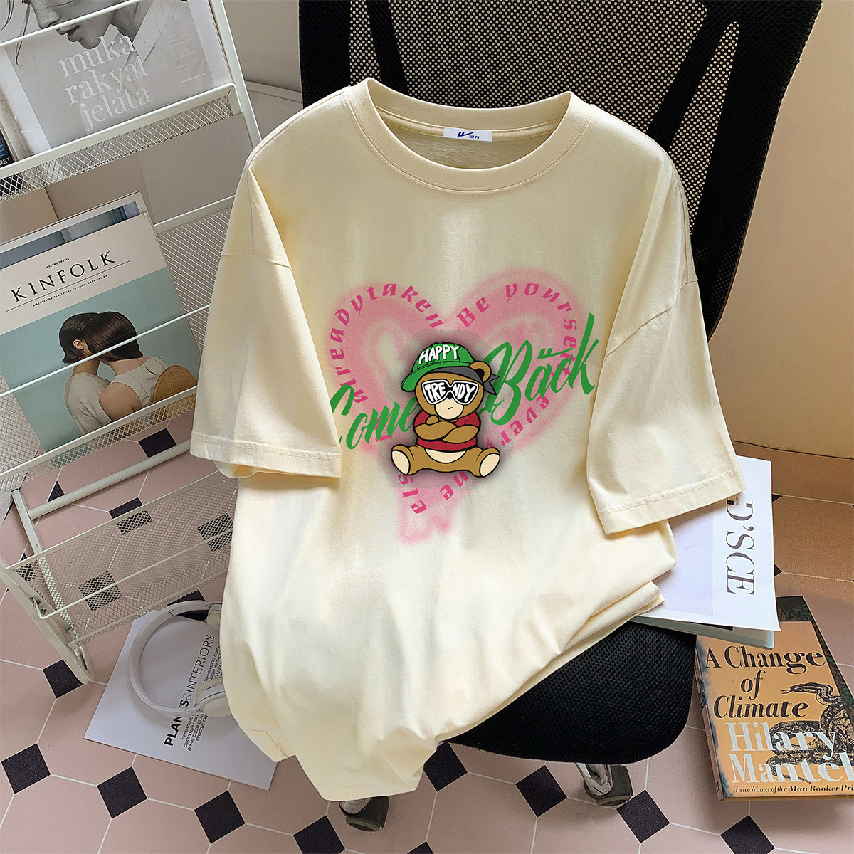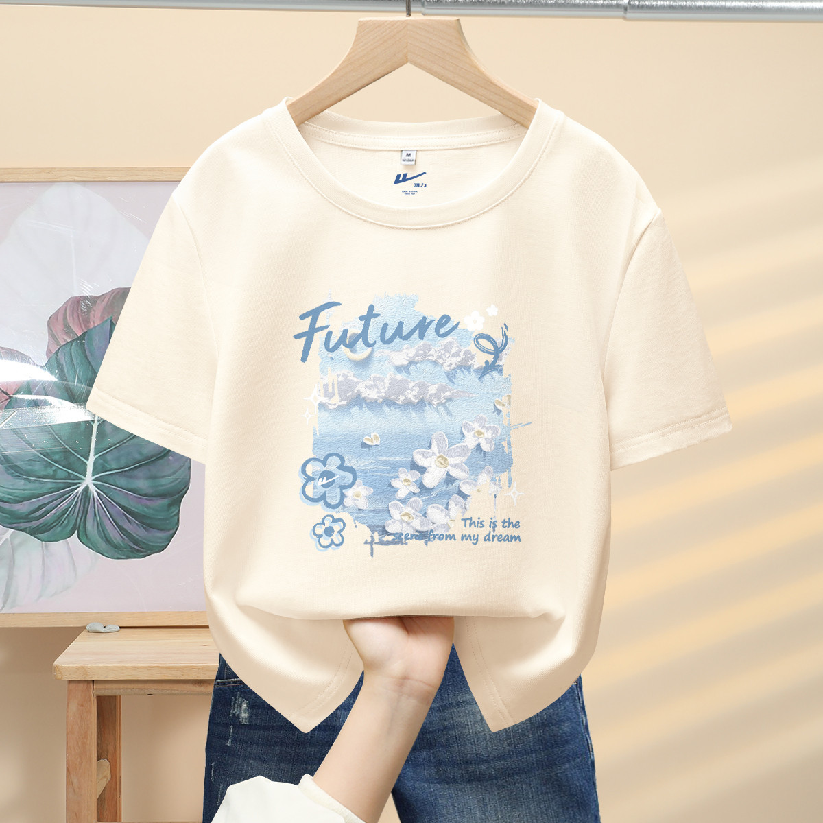 美式纯棉t恤女短袖上衣服情侣设计感印花夏季大码宽松半袖tee 541331