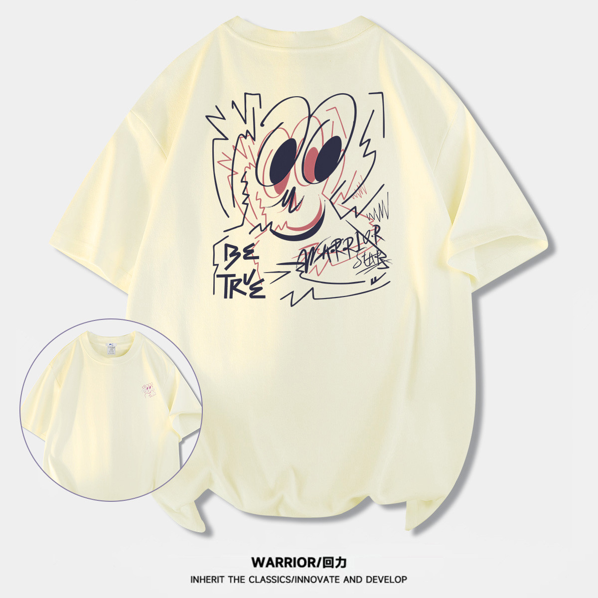 【100%纯棉】国潮复古风夏季宽松潮牌高街帅气男生短袖t恤衫 457555