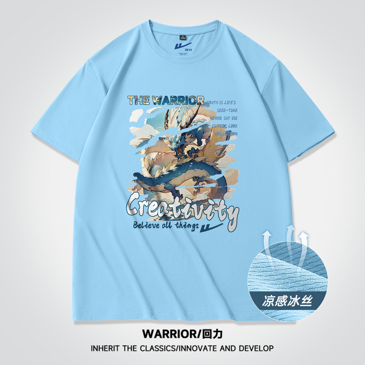 【冰感棉款】冰丝男士短袖T恤美式休闲简约字母印花圆领运动上衣 390291