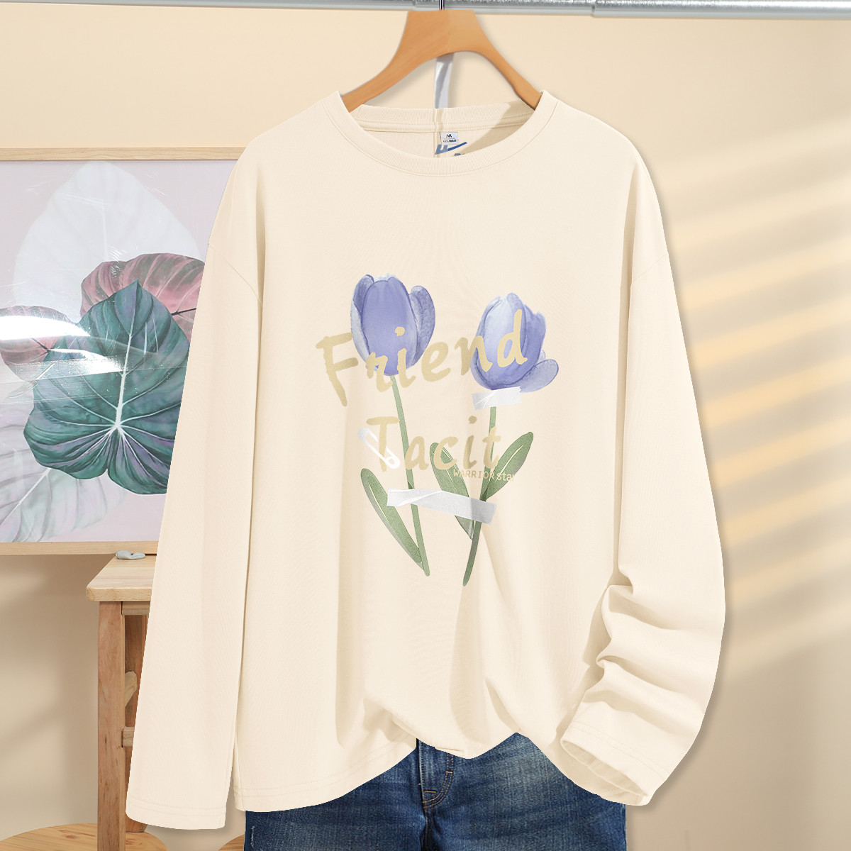 【女装重磅棉】春秋纯棉长袖T恤女宽松显瘦休闲百搭打底上衣女 756435