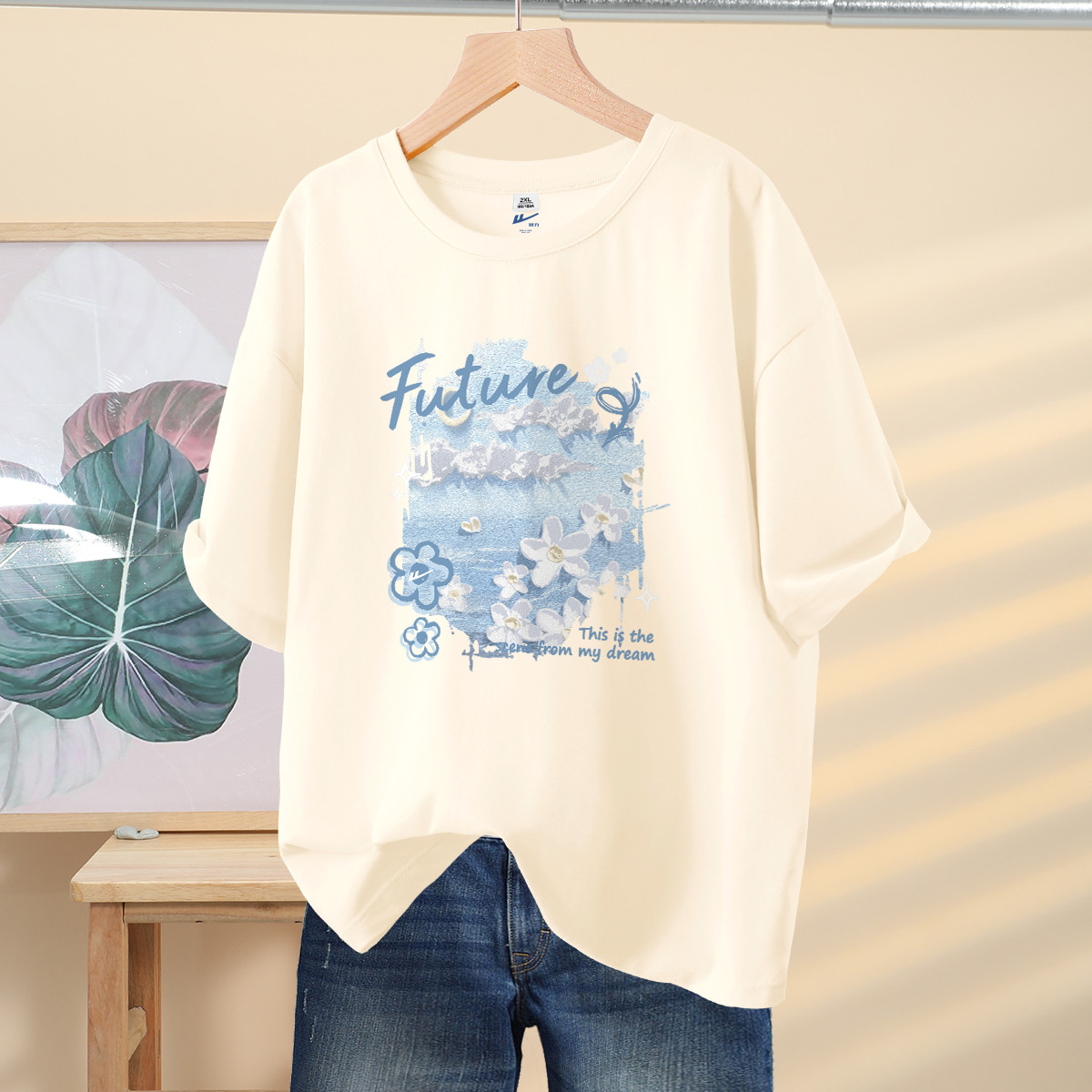 【女装】夏季女式休闲T恤宽松纯棉透气女装短袖大码胖妹妹 858451
