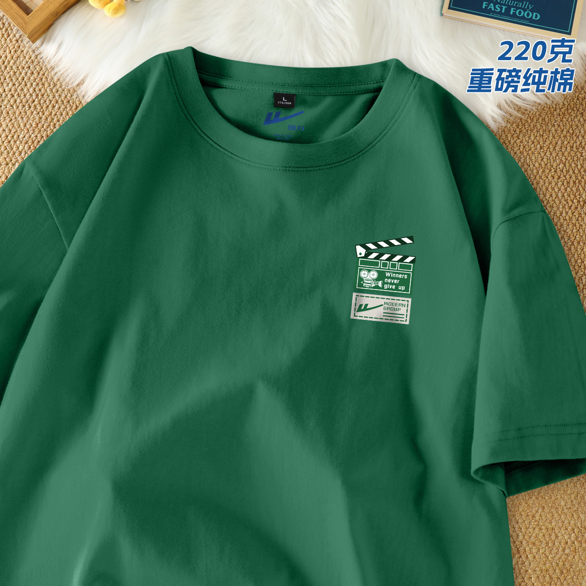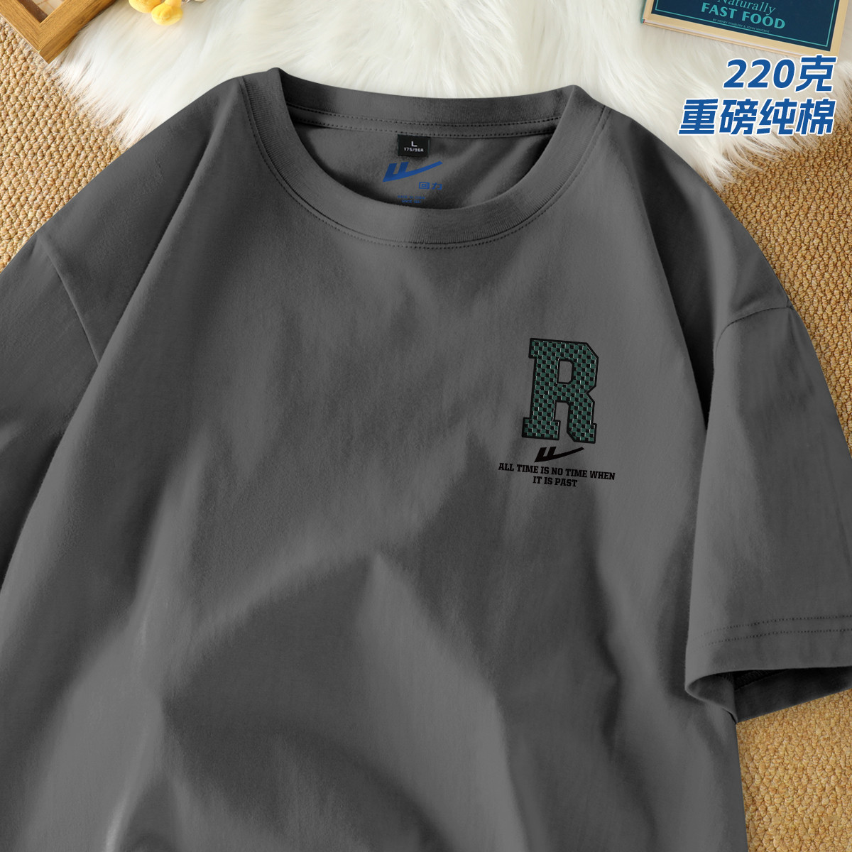 【220克重磅棉】短袖男宽松大码简约潮牌运动上衣重磅纯棉t恤 821331