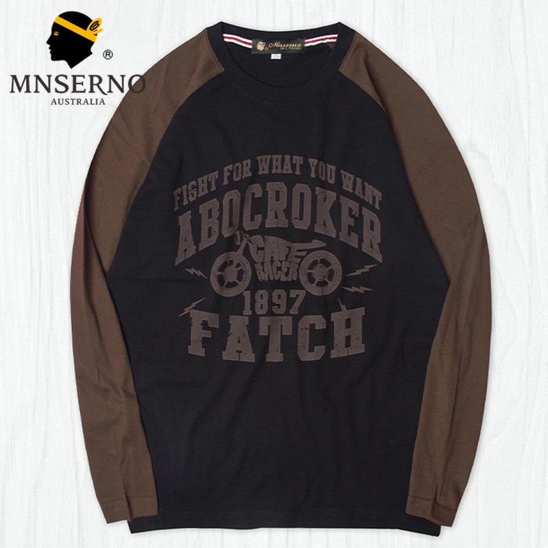 曼西尔奴男士潮流时尚纯棉个性字母印花拼色百搭休闲圆领长袖T恤121145TM