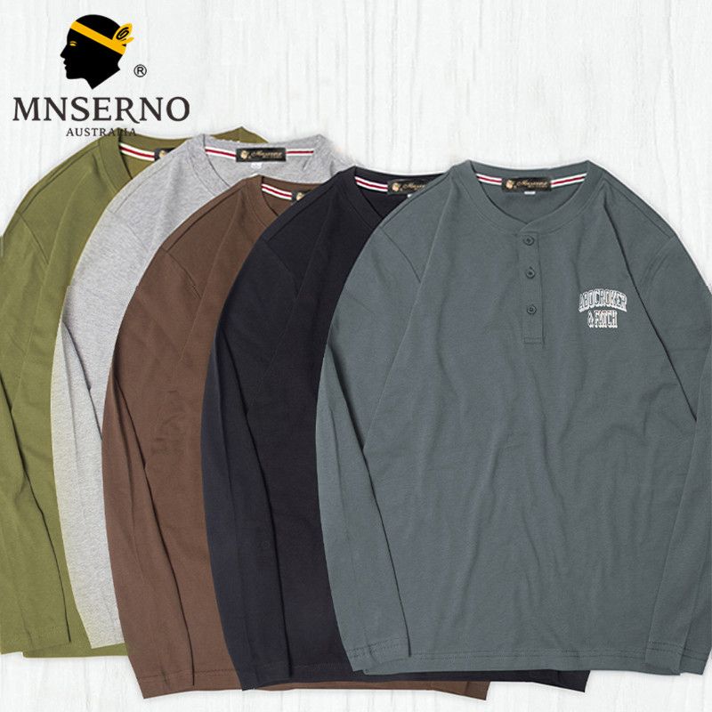 曼西尔奴男士潮流时尚百搭休闲纯棉纽扣字母印花圆领长袖T恤121143TM