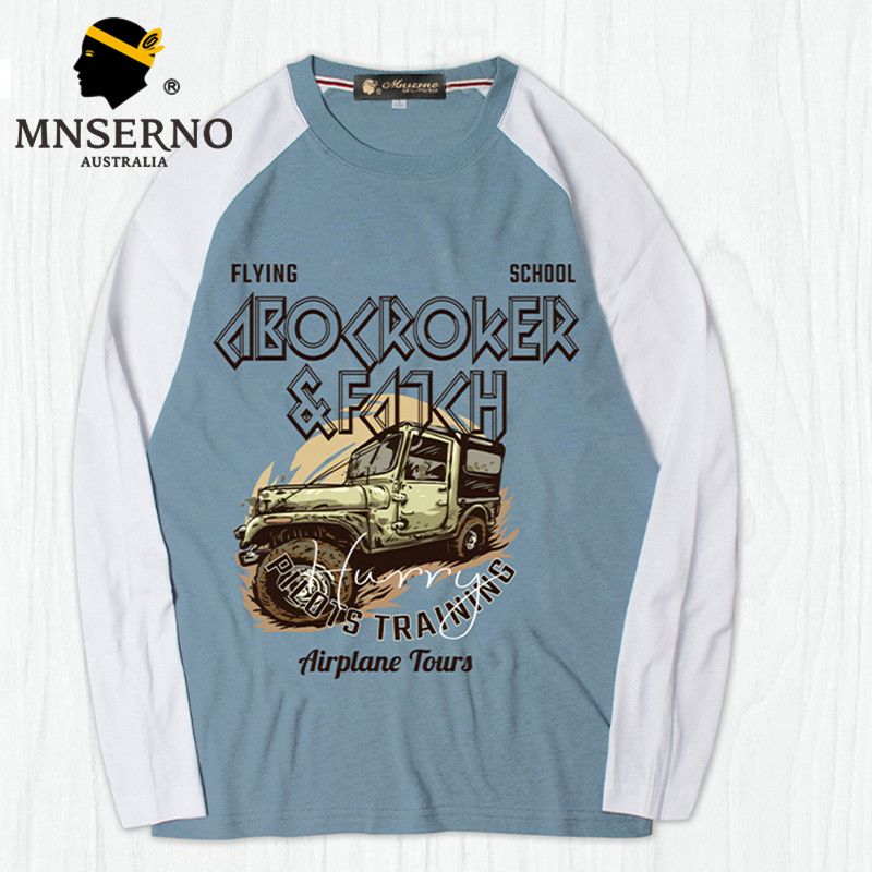 曼西尔奴男士潮流时尚纯棉百搭休闲修身个性字母印花圆领长袖T恤121144TM