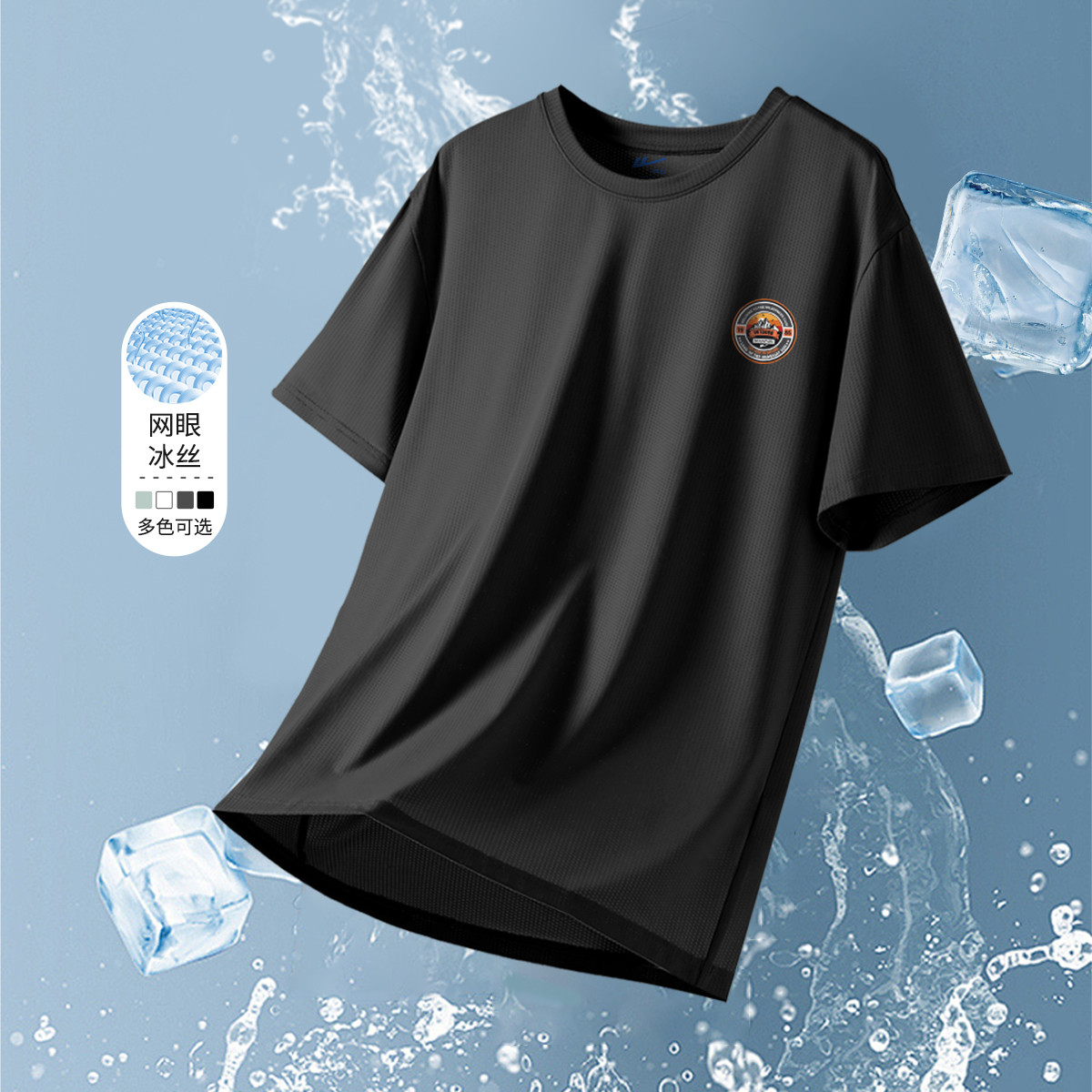 【凉感透气】冰丝网眼短袖男薄款垂坠感弹力夏季户外健身运动T恤 666643