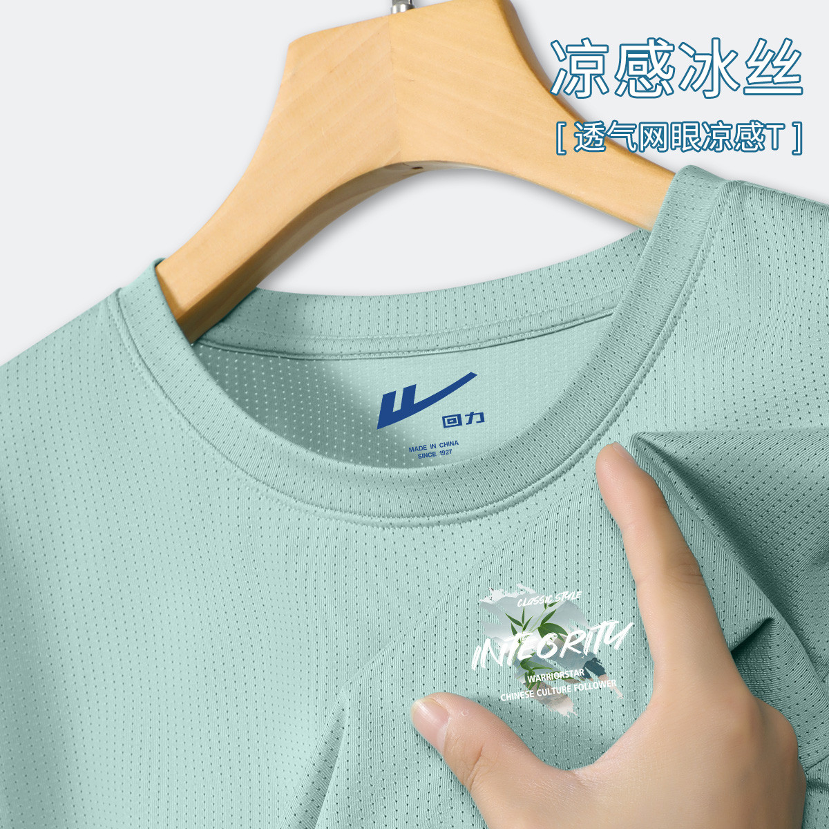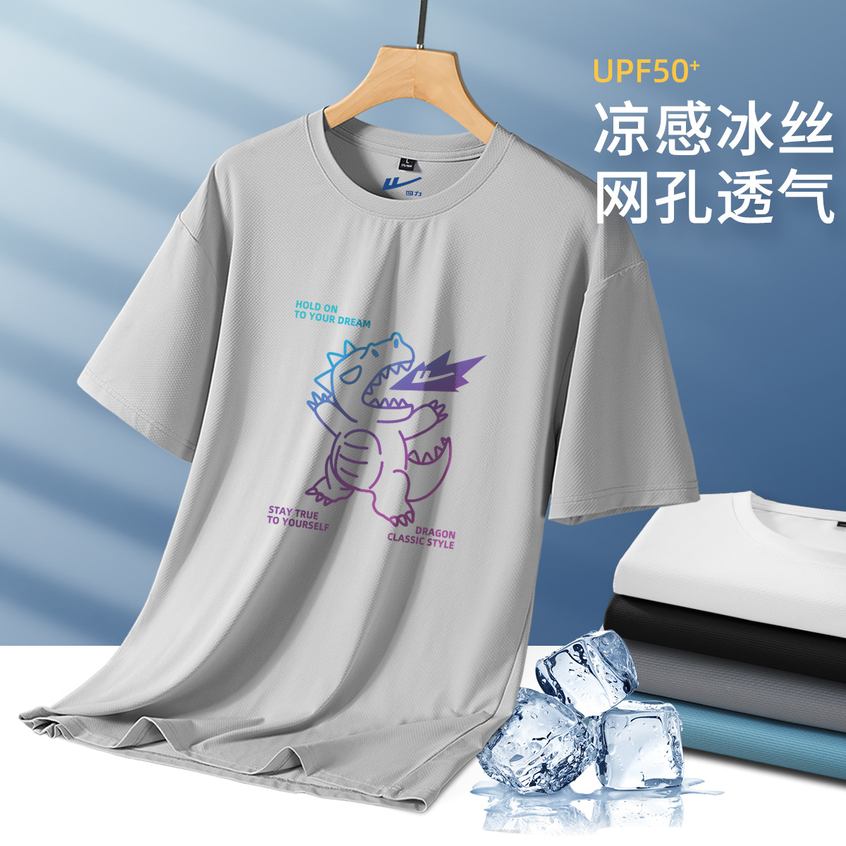 【冰感透气】冰丝网眼短袖t恤男夏季简约印花轻薄透气运动上衣 651795