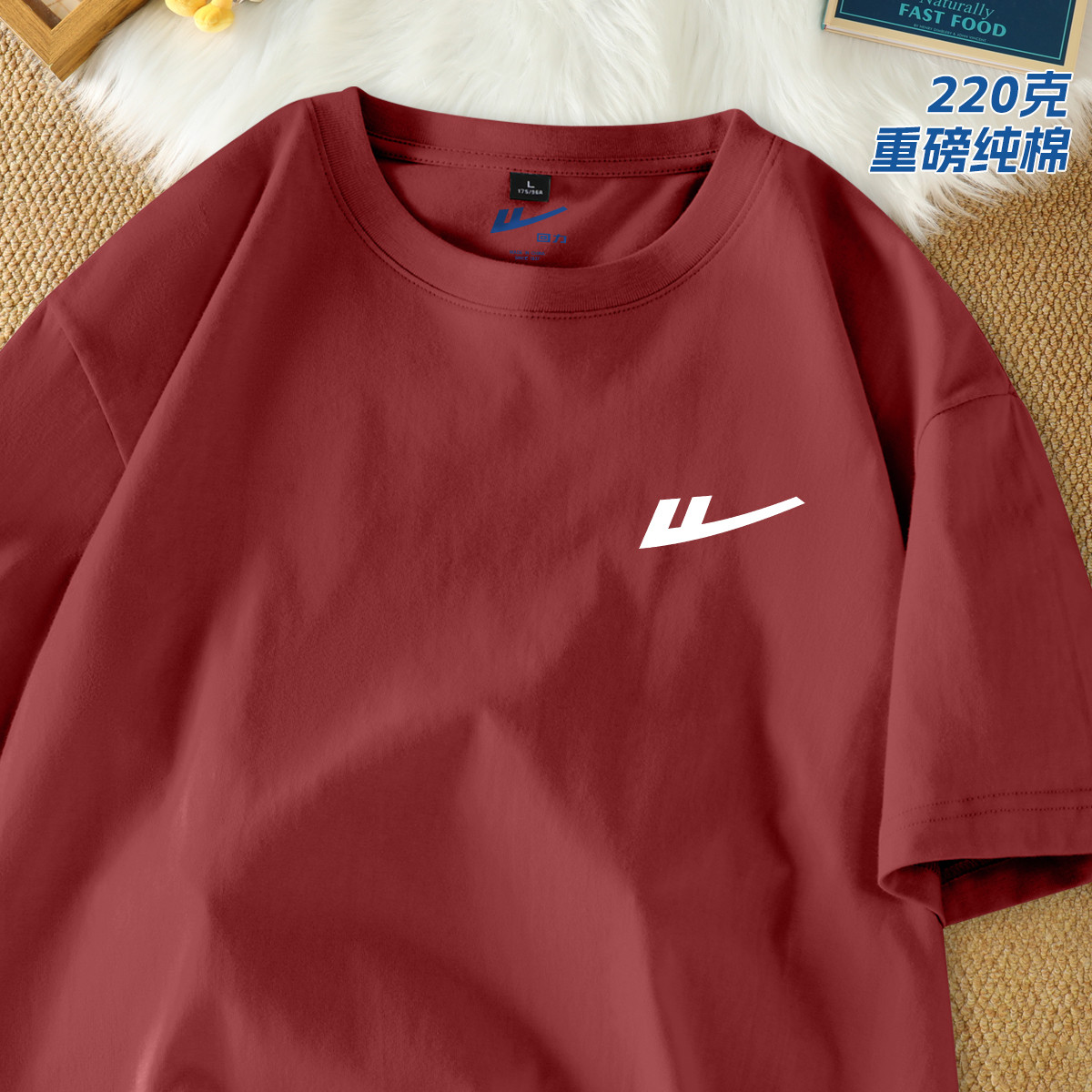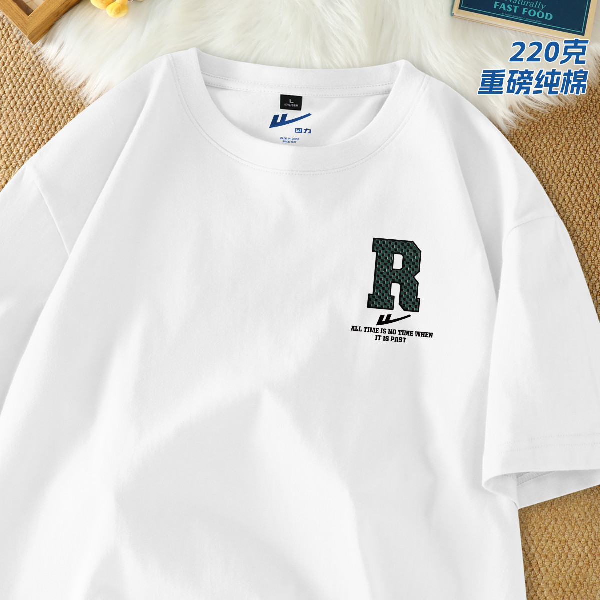 【220克重磅棉】短袖男宽松大码简约潮牌运动上衣重磅纯棉t恤 821331