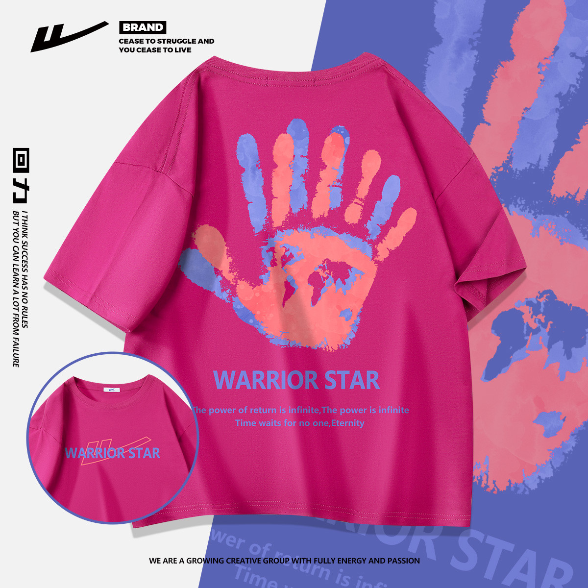 【100%纯棉】国潮复古风夏季宽松潮牌高街帅气男生短袖t恤衫 457555