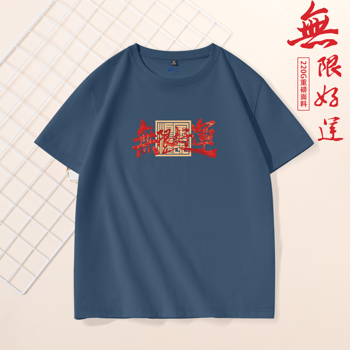 【重磅纯棉】国潮短袖t恤男夏季宽松透气男女同款无限好运半袖 043283
