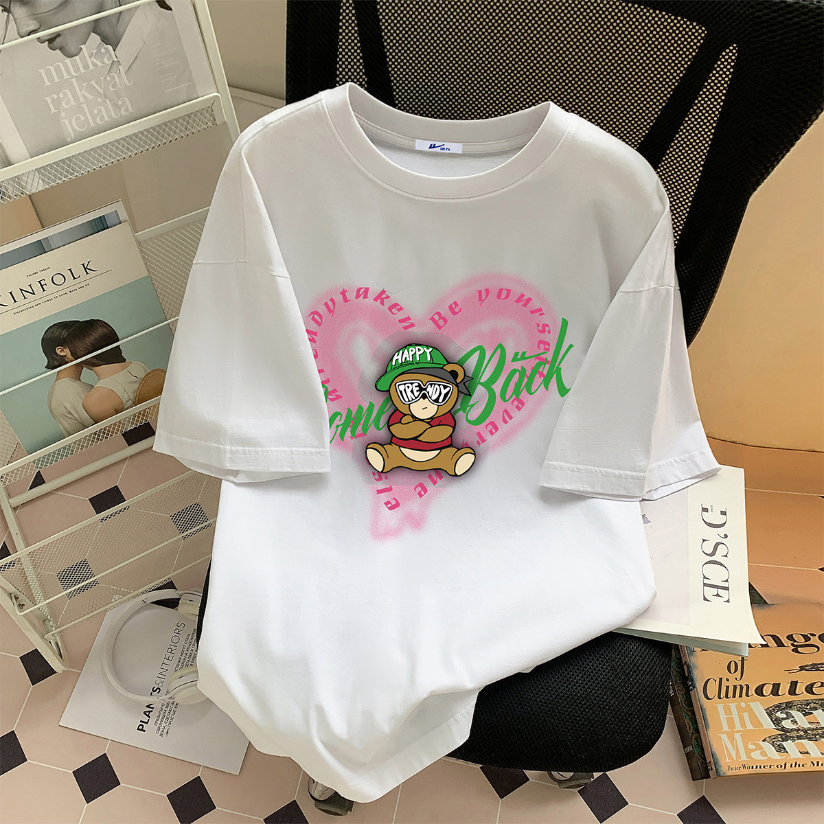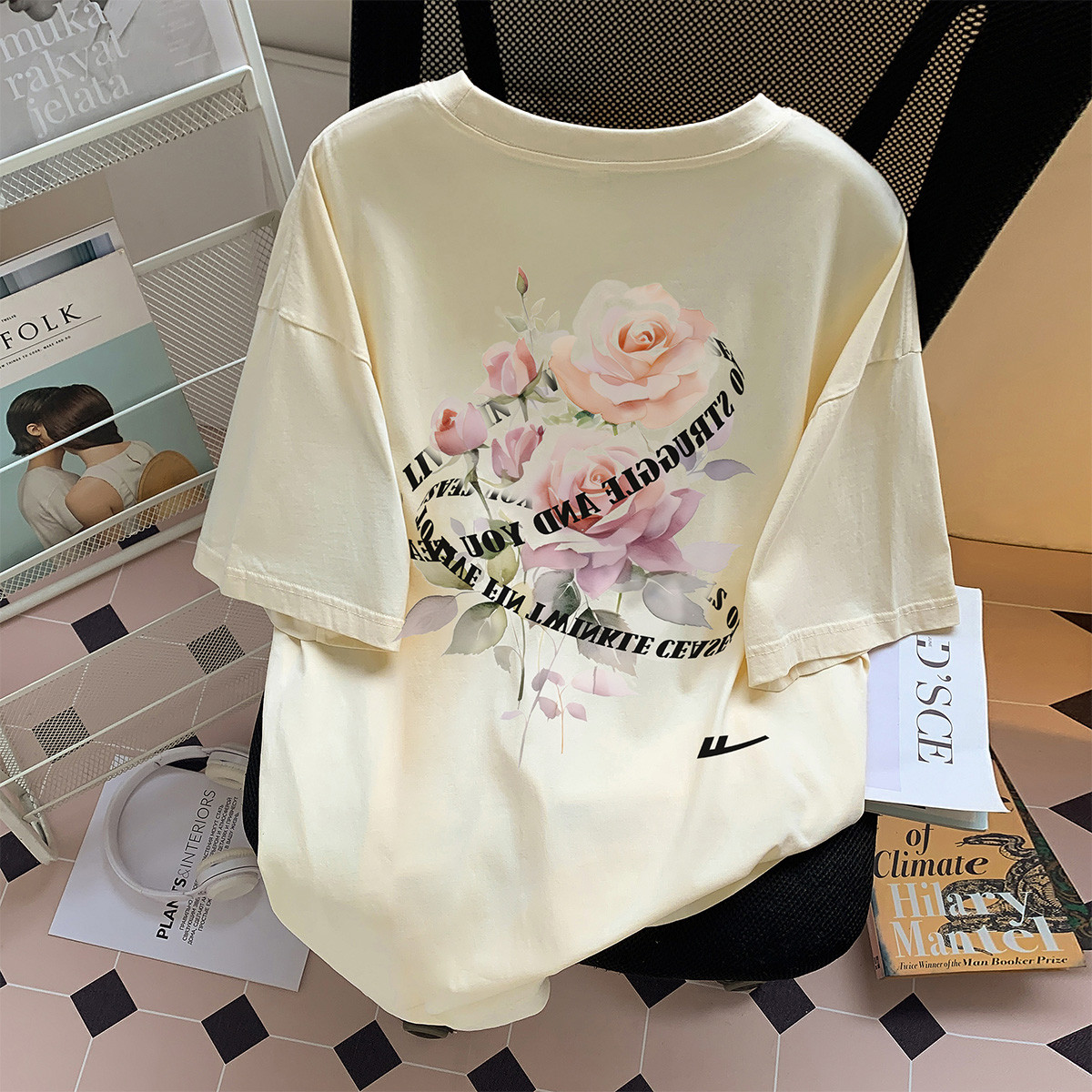 【100%棉】情侣纯棉玫瑰印花T恤女短袖ins慵懒风宽松半袖 825363